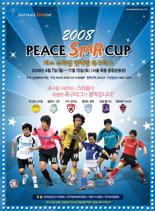 '스타들이 어린이 난민 지원과 평화를 위해서 뛴다.' 피스스타컵 조직위원회는 오는 7일 2008 피스스타컵 대회를 개막한다고 밝혔다. 피스스타컵 연예인 축구 리그는 연예인들이 축구를 통해 세계 봉사활동을 한다는 취재 아래 작년에 이어 2회째 개최되고 있다. 2008 피스스타컵 개막전 첫 경기에서는 2007년 결승전에서 불꽃 튀는 접전을 펼쳤던 가수 ‘라이브 팀’과 탤런트 ‘그린 팀’이 격돌한다. 대회 2연패를 노리는 가수 팀은 김흥국 단장을 필두로 하여 지난 대회 득점왕과 MVP를 한 손에 거머쥐며 '왕별'로 떠 오른 탁재훈을 비롯해 김창렬, 김C 등이 출전한다. 한편, 복수전에 나서는 탤런트 ‘그린 팀’은 연예계의 축구 선수로 불리는 유오성이 가세해 공격력이 한 층 업그레이드 된 것으로 평가 받고 있어, 가수 팀과의 치열한 기 싸움이 예상된다. 피스스타컵은 지난해 유니세프(UNICEF)의 '에이즈 퇴치 캠페인'에 동참한 데 이어 올해에는 난민보호와 구호 활동을 하는 UN산하기구인 UNHCR(유엔난민기구)의 '900만 어린이 난민 돕기-나인밀리언 캠페인’에 동참 할 예정이다. 또한 올해 피스스타컵 대회의 수익금 전액은 어린이 난민들을 위한 스포츠 활동 및 교육을 위해 쓰이게 된다. 개막전을 시작으로 공식일정에 돌입하는 2008 피스스타컵은 4월 7일부터 6월 9일까지 전반기 리그가 펼쳐지며 7~8월 휴식기를 거쳐 9월 20일부터 11월 15일까지 후반기 리그가 진행될 예정이다. 7일 개막전 경기는 강성범이 해설자로 나서며, 오후 2시부터 MBC ESPN을 통해 라이브로 생중계된다. ricky337@osen.co.kr