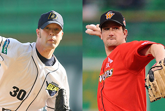 두산 베어스의 기둥투수 맷 랜들과 SK 와이번스의 1선발 케니 레이번이 진검 승부를 펼친다. 두산과 SK는 19일 잠실구장서 올시즌 5번째 맞대결을 펼친다. 지난 6일 문학 원정서 5이닝 6피안타 2실점으로 비교적 호투하고도 타선 침묵으로 패전의 멍에를 썼던 랜들은 올시즌 팀과 자신의 SK전 첫 승을 위해 호투하겠다는 각오다. 랜들은 올시즌 3경기서 16⅓이닝을 던져 1승 1패 방어율 2.20을 기록 중이다. 좋은 성적이긴 하지만 지난 12일 LG전서 6이닝에 맞췄을 뿐 나머지 경기서는 5이닝을 간신히 넘겼다는 점을 감안하면 일말의 불안함이 있다. 지난 시즌 팔꿈치 부상에도 불구하고 28경기 동안 164⅓이닝을 던졌던 것을 생각하면 이닝 소화 능력이 아쉬울 따름이다. 현재 두산은 불펜진의 '복귀 트리오' 중 이재우만이 1군에 잔류해있을 뿐, 이재영과 이혜천은 2군에 머무르고 있다. 따라서 2년차 우완 임태훈 등 신예들에 랜들의 뒤를 의지해야 한다는 부담을 안고 있다. 랜들이 6이닝 이상을 무리없이 소화해주어야 불펜진의 과부하도 덜할 것이다. 레이번은 올시즌 4경기 동안 23이닝을 던지며 1승 방어율 2.74를 기록 중이다. 23이닝 동안 탈삼진은 5개에 불과하지만 맞춰잡는 피칭으로 나쁘지 않은 성적을 거두고 있다. 피안타율도 2할3푼5리로 적절하다. 그러나 레이번은 고질화 된 몸에 맞는 볼을 줄여야 한다. 지난 12일 목동서 열린 히어로즈전서도 4회 몸에 맞는 볼을 내주며 흔들렸고 이로 인해 선제 2실점한 전력이 있다. 타자 안쪽 승부를 좋아하는 레이번이지만 제구력에서 문제점을 노출하며 몸에 맞는 볼을 내주고 흔들리는 경기를 펼치는 것이 레이번의 단점이다. 랜들의 이닝 소화 능력과 레이번의 제구력. 이것이 18일 잠실경기의 키 포인트가 될 전망이다. chul@osen.co.kr