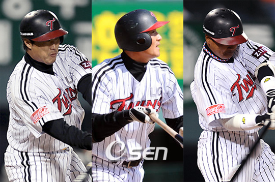 LG 트윈스 '베테랑 3인방' 최동수(37)-이종렬(35)-조인성(33)이 화끈한 불방망이를 뽐내며 팀의 2연승을 견인했다. 이들은 20일 대구구장에서 벌어진 삼성과의 원정 경기서 결정적인 한 방을 터트리며 팀의 7-3 승리에 이바지했다. 1루수 겸 4번 타자로 선발 출장한 '맏형' 최동수가 2타점 적시타로 신호탄을 쏘아 올렸다. 최동수는 1-0으로 불안한 리드를 지키던 3회 이대형의 내야 안타와 박경수의 좌전 안타, 박용택의 볼넷으로 만든 1사 만루서 좌익선상에 떨어지는 2루타로 이대형과 박경수를 홈으로 불러 들였다. 이에 질세라 5번 이종렬도 우중간에 떨어지는 안타를 터트리며 주자 2명을 홈으로 불러 들였다. 5-2로 앞선 LG의 5회초 공격. 선두 타자 최동수의 좌익선상 2루타에 이어 이종렬의 희생 번트로 1사 3루 추가 득점 찬스를 잡자 조인성이 삼성의 두 번째 투수 안지만의 142km 초구 직구를 걷어 왼쪽 펜스를 넘는 비거리 125m 짜리 투런 아치를 터트렸다. 공을 때린 뒤 홈런을 직감한 조인성은 천천히 1루로 걸어가는 여유도 보였다. 2연승을 거둔 김재박 LG 감독은 "선발 봉중근이 초반 위기를 잘 넘기고 중반까지 잘 던진 것이 승인"이라며 "타자들의 득점력이 높아져 투수들이 편하게 던질 수 있는 것 같다. 좀 더 지켜봐야 겠지만 투타 밸런스가 안정감을 찾아가는 느낌"이라고 평가했다. what@osen.co.kr 최동수-이종렬-조인성.