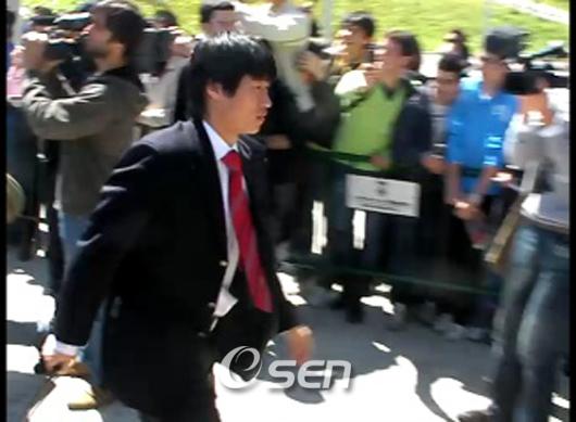 [OSEN=바르셀로나, 이건 특파원] 역시 맨체스터 유나이티드(이하 맨유)는 전세계적인 인기 클럽이었다. 21일 오후 맨유 선수단이 묶을 바르셀로나의 에스페리아 호텔로 100여 명의 축구팬들이 몰려들었다. 오랜 기다림 끝에 맨유 선수단을 태운 버스가 등장하자 맨유 팬들은 환호성을 지르며 맞이했다. 알렉스 퍼거슨 감독을 필두로 버스에서 내린 선수단은 팬들의 환호에 간단히 인사를 하며 속속 숙소로 입장했다. 스페인 팬들은 박지성이 보이자 그의 이름을 부르기도 했다. 이 날 팬들에게 최고의 사랑을 받은 선수는 바로 크리스티아누 호나우두였다. 호나우두는 선수단 말미에 버스에서 내렸다. 그의 모습을 본 팬들은 일제히 "로날도~" 를 외치며 환호했다. 한 팬은 아기를 안고 달려가 사인을 요구하다가 안전요원에게 제지를 받기도. 이같이 호나우두는 현재 바르셀로나 현지의 주목을 한 몸에 받고 있다. 스페인 언론은 기록이나 플레이 스타일 등 여러가지 면에서 호나우두를 철저히 분석하고 있다. 특히 바르셀로나에서 뛰고 있는 리오넬 메시와의 첫 맞대결에 초점을 맞추고 있다. bbadagun@osen.co.kr . . . . .