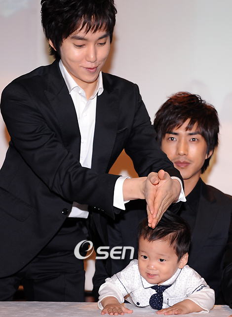 좌충우돌 다섯 남자의 따뜻한 육아일기 '다섯남자와 아기천사' 기자간담회가 28일 서울 청담동 한 레스토랑에서 열렸다. 무관심 속에서 소외되고 있는 어린 아기들에게 가족을 찾아 주기 위한 취지로, 다섯 남자가 아기(해찬)를 양육하는 모습을 그린 휴머니즘 리얼리티 형식의 프로그램이다. 최원준이 '아기천사' 해찬이의 머리를 만져주고 있다. /황세준 기자 storkjoon@osen.co.kr