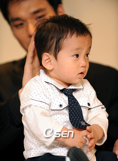 좌충우돌 다섯 남자의 따뜻한 육아일기 '다섯남자와 아기천사' 기자간담회가 28일 서울 청담동 한 레스토랑에서 열렸다. 무관심 속에서 소외되고 있는 어린 아기들에게 가족을 찾아 주기 위한 취지로, 다섯 남자가 아기(해찬)를 양육하는 모습을 그린 휴머니즘 리얼리티 형식의 프로그램이다. 원태희가 해찬이의 머리를 쓰다듬고 있다. /황세준 기자 storkjoon@osen.co.kr
