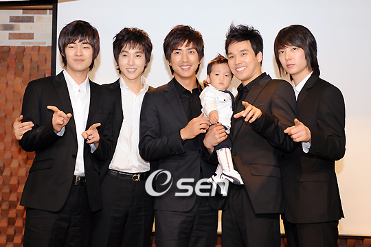 좌충우돌 다섯 남자의 따뜻한 육아일기 '다섯남자와 아기천사' 기자간담회가 28일 서울 청담동 한 레스토랑에서 열렸다. 무관심 속에서 소외되고 있는 어린 아기들에게 가족을 찾아 주기 위한 취지로, 다섯 남자가 아기(해찬)를 양육하는 모습을 그린 휴머니즘 리얼리티 형식의 프로그램이다. 진원 최원준 고세원 해찬 원태희 지은성(왼쪽부터)이 포토타임을 갖고 있다. /황세준 기자 storkjoon@osen.co.kr