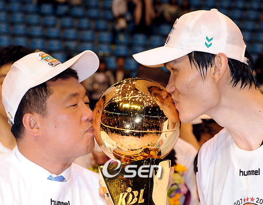 두산 베어스(사장 김진)는 30일 잠실 KIA 타이거즈전에 앞서 2007-2008 프로농구 통합 챔피언에 오른 원주 동부 프로미의 전창진 감독과 MVP 트리플 크라운(정규리그-올스타전-챔피언 결정전 MVP)의 주인공인 김주성 선수를 초청, 승리 기원 시구와 시타 행사를 실시한다. 이 행사는 프로농구 통합 챔피언을 차지한 원주 동부의 우승을 축하하고 두산 베어스의 이번 시즌 선전을 기원하는 의미서 추진된 것이다. 전창진 감독이 이끄는 원주 동부 프로미는 지난 25일 챔피언 결정전서 서울 삼성 썬더스를 꺾으며 남자 프로농구 최단 경기 정규리그 우승과 함께 이번 시즌 통합 우승을 차지한 바 있다. 먼저 이날 경기 시작에 앞서 그라운드서 두산 김경문 감독과 동부 전창진 감독이 홈 유니폼 교환식을 실시하며 양팀의 선수단 대표로서 김동주와 김주성이 선수단 대형 친필 사인볼을 교환할 예정이다. 또한 이날 두산의 승리 기원 시구를 위해 김주성이 마운드서 시구를 맡고 전창진 감독은 타석서 시타를 맡는다. 한편 지난 1월 5일 원주 치악 체육관서 열린 원주 동부의 홈경기서는 두산 최고참 안경현이 시투를 실시한 바 있다. chul@osen.co.kr 원주 동부 전창진 감독과 MVP를 수상한 김주성이 지난 25일 통합 우승을 확정지은 후 우승 트로피에 입을 맞추고 있다. /황세준 기자 storkjoon@osen.co.kr