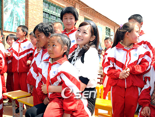 전문 CF 모델 김다은이 민간사절단 구실을 톡톡히 했다. 김다은은 29일 오전 중국 산동성 제남시 태산 자락에 있는 서장초등학교를 방문해 학교 발전 성금 1차분 10만 위안(약 1400만 원)을 전달했다. 이 행사에는 유의상 대한민국 주청도총영사관 부총영사, 쉬쓰이퀸 제남시정부 대외우호협회 부회장, 박태준 수지운 화장품 대표이사 등이 참석해 양국의 우의를 다지는 뜻 깊은 자리가 됐다. 수지운 화장품은 중국에서 김다은의 이름을 딴 화장품을 런칭할 계획이고 김다은은 이 회사로부터 받은 모델료를 중국의 불우한 학생들을 돕는데 쓰겠다며 선뜻 성금으로 내 놓았다. 서장초등학교는 제남시에서도 벽지에 해당돼 비가 오면 교실에 빗물이 샐 정도로 교육 환경이 열악하다. 김다은이 서장초등학교 학생들 틈에서 환한 웃음을 짓고 있다. /제남(중국 산동성)=강희수 기자 100c@osen.co.kr