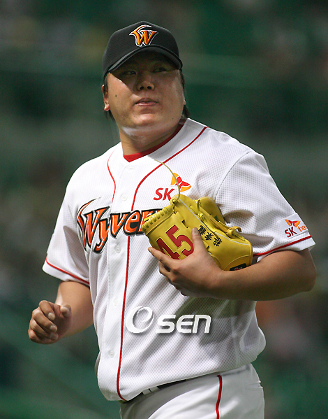 [OSEN=대전, 이상학 객원기자] “김광현하고 레이번 그리고 채병룡이 나오는 경기까지 꼭 이기더라구.” 29일 SK와의 대전 홈경기르 앞두고 한화 김인식 감독은 SK의 전력을 매우 높이 평가했다. 투타 가릴 것 없이 빈틈없는 팀 전력에 혀를 내둘렀다. 김 감독은 “채병룡이까지 나오는 경기도 꼭 이긴다”고 말했다. 그 채병룡이 이날 경기에서 선발등판해 한화를 물먹였다. 8이닝 5피안타 4탈삼진 무사사구 1실점. 올 시즌 가장 많은 투구이닝을 소화하며 최소실점으로 막았다. 투구수는 단 99개. 시즌 4승과 함께 방어율도 1점대(1.98)로 끌어내렸다. 채병룡의 투구는 완벽에 가까웠다. 직구 구속은 138~142km밖에 나오지 않았지만 체인지업과 슬라이더를 적절히 섞어던지며 한화 타자들의 타이밍을 빼앗았다. 특히 초구 스트라이크에 연연하지 않고 힘 좋은 한화 타자들과 신중하게 승부한 것이 적중했다. 이날 채병룡은 초구 스트라이크 비율이 58.6%로 그리 높지 않았다. 하지만 이것이 일종의 함정이었다. 한화 타자들이 초구부터 승부한다는 것을 전력분석이 간파해 채병룡과 박경완 배터리에 전달한 것이 주효했다. 채병룡은 “팀이 이겨서 좋다. 투수라면 8이닝 정도 던지면 완봉에 대한 욕심이 나기 마련이다. 하지만 감독님 뜻에 따라야 한다”고 아쉽게 완봉을 놓친 승리 소감을 밝혔다. 채병룡은 “전력분석에서 초구부터 스트라이크를 잡으려고 쉽게 쉽게 승부하지 말고, 변화구를 적절하게 던져야 한다고 해 그렇게 했다. 초구 체인지업을 많이 던졌다. 굳이 초구 스트라이크를 잡지 않고, 조심스럽게 승부한 것이 좋았다”고 밝혔다. 특히 초구 스트라이크의 불리함을 딛고 정교한 제구력으로 타자들을 누른 것이 돋보였다. 김성근 감독도 “채병룡의 컨트롤이 매우 좋았다”고 칭찬했다. 채병룡은 “사실 페이스가 좋은 건 아니다. 말이 4연승이지 운이 좋아 이긴 것이다. 하지만 포수 박경완 선배를 믿고 수비수들을 믿고 한 것이 좋은 결과로 이어진 것 같다. 특히 박경완 선배의 리드가 워낙 좋아 믿고 던졌다”며 박경완을 비롯한 동료들에게 공을 돌렸다. 또한 채병룡은 “지난 캠프에서 입에 단내나게 훈련했다. 이렇게 훈련을 많이 한 건 난생 처음이었다. 입에 거품을 물 정도였다. 하지만 그만큼 효과를 보는 것 같다”고 설명했다. 채병룡은 팔꿈치 부상으로 김성근 감독 부임 첫 해에는 캠프에 참가하지 못했고 올해 처음으로 지옥훈련을 경험했다. 채병룡은 “아무래도 날씨가 더운 걸 좋아한다. 날이 따듯해지면 차츰 페이스가 올라올 것”이라며 “작년보다 더 나은 성적을 목표로 생각하고 있다. 15승 정도 잡고 있다”고 말했다. 지난해 채병룡은 11승8패 방어율 2.84를 기록했다. 데뷔 첫 두 자릿수 승수와 2점대 방어율. 현재 채병룡은 6경기에서 4승 방어율 1.98을 기록 중이다.