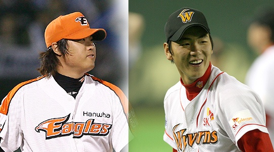 "별로 신경 안써요".(한화 류현진) "그렇게 맞붙고 싶은 생각은 없어요".(SK 김광현) 지난 29일부터 대전구장에서 펼쳐지고 있는 SK와 한화간의 시즌 첫 3연전은 올 시즌 초반 최고의 빅 매치로 관심을 모았다. 롯데, 삼성, 두산 등 4강으로 분류되던 팀들이 모두 SK에 열세를 보인 상태에서 한화만이 유일한 대항마로 떠올랐기 때문이다. 실제로 한화는 30일 경기에서 6-2로 완승, 전날의 4-8 패배를 고스란히 되갚으며 시즌 상대 전적을 1승 1패로 맞추는 데 성공했다. SK와 한화전은 팀간 맞대결과는 별도로 좌완 영건간의 격돌로도 관심을 모았다. 29일 양팀 관계자들은 "류현진과 김광현이 한 번 맞붙어야 하지 않겠냐"며 "두 팀 모두 상승세에 있는 만큼 관중들도 좋아할 것"이라고 '좌완 영건 괴물'간의 맞대결에 큰 관심을 보였다. 마침 이날 선발로 나선 류현진(21)이 시즌 5승째를 챙겨 김광현(20)과 나란히 다승 공동 선두로 올라서자 분위기는 더욱 고조됐다. 하지만 정작 본인들은 이런 주위의 폭발적인 관심과는 달리 시큰둥한 반응이다. 김광현은 이날 경기에 앞서 류현진과의 맞대결과 관련한 질문을 받았지만 "꼭 그러고 싶지는 않다"며 "아마 현진이형도 마찬가지 생각일 것"이라고 말했다. 이어 "현진이형 입장에서는 지면 손해지만 이겨도 본전"이라며 "꼭 나랑 맞대결하고 싶어하지는 않을 것"이라고 설명했다. 사실 류현진은 신인 시절이던 2006년부터 지난해까지 2년 동안 35승을 거두며 최정상급 투수로 자리매김했다. 일찌감치 '괴물' 칭호를 받으며 국가대표 에이스로까지 떠올랐다. 그러나 김광현은 지난해 '제 2의 류현진'으로 기대를 모았지만 별다른 활약을 펼치지 못했다. 시즌 막바지 한국시리즈, 코나미컵을 거쳐 베이징올림픽 최종예선에서 맹활약 새롭게 각광받고 있다. 올 시즌에는 가장 먼저 5승 고지를 밟으며 본격적인 에이스급 피칭을 선보이고 있지만 1년 선배로서의 예우를 갖춘 것이다. 류현진도 마찬가지. 류현진은 이날 시즌 5승과 통산 40승째를 거둔 후 가진 인터뷰에서 "김광현과의 대결에 대해서는 별로 생각해 본 적이 없다"며 "별로 의식하지 않는다"고 짧막하게 답했다. 과연 언제쯤 성장 일로를 걷고 있는 두 좌완의 대결이 성사될까. 야구팬들의 관심은 더욱 높아지고 있다. letmeout@osen.co.kr 류현진-김광현. . . . . .