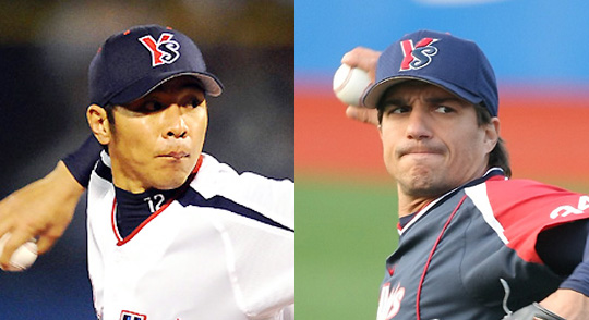 올 시즌 나란히 일본 무대에 진출한 임창용(32)과 다니엘 리오스(36). 야쿠르트에서 한솥밥을 먹는 이들의 성적은 엇갈린다. 삼성에서 이적한 야쿠르트 마무리 임창용에 대해 선동렬 삼성 감독은 "팔꿈치 인대 접합 수술을 받은 뒤 2년이 지나야 정상 구위를 회복할 수 있다. 임창용이 좋은 활약을 펼치는 것도 이와 같은 이유"라고 설명했다. 2005년 가을 오른쪽 팔꿈치 수술을 받은 임창용은 지난해 삼성에서 뛰며 5승 7패 3홀드(방어율 4.90)에 그쳤으나 150km 안팎의 강속구를 뿌리며 9경기에 등판해 6세이브(방어율 0,00)를 거뒀다. 특히 단 한 점도 허용하지 않아 '미스터 제로'라는 별명까지 얻었다. 선 감독은 "감독이 임창용을 마무리로 신임했다는 것은 본인에게 큰 도움이 된다. 1점 차 승부에 등판할수록 자신감을 갖고 자기 공을 던질 수 있다"고 말했다. 지난해 두산에서 뛰었던 리오스는 33경기에 등판해 네 차례의 완봉승을 포함, 22승 5패(방어율 2.07)를 거두며 다승-방어율-승률 1위로 팀의 한국시리즈 진출을 견인했다. 특히 1998년 타이론 우즈(현 주니치)에 이어 외국인 선수 두 번째로 페넌트레이스 MVP에 오른 뒤 골든 글러브까지 거머 쥐었다. 그러나 일본 무대에서 1승 3패(방어율 6.00)에 그치며 고개를 떨궜다. 선 감독은 리오스의 부진에 대해 떨어지는 변화구가 없다고 꼬집었다. 선 감독은 "빠른 공을 가졌으나 슬라이더와 체인지업의 완급 조절만 될 뿐 떨어지는 변화구를 구사하지 못한다"며 "일본 타자들이 정교해 고전할 수 밖에 없다"고 평가했다. 이어 선 감독은 "나는 일본에서 뛸 때 보크 때문에 크게 고생하지 않았다. 일본 심판들은 투수가 정지 표시를 확실히 해주면 문제 삼지 않으나 리오스는 그렇지 않다"고 덧붙였다. what@osen.co.kr . . . . .