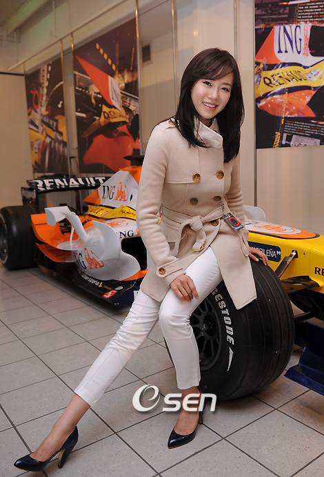 모터스포츠의 꽃이라고 불리는 ‘A1 그랑프리’에 우리나라도 참가할 길이 열렸다. (주)굿이엠지의 자회사인 옴니버스파트너가 오는 9월 시작되는 2008/9시즌부터 A1 Team Korea라는 이름으로 경기에 참여하게 되었다. A1 코리아팀 홍보대사로 위촉 된 CF퀸 김다은이 2일(한국시간) 영국 엔스톤시에 위치한 르노F1 공장과 옥스퍼드시에 위치한 실버스톤 서킷을 방문, ‘모터스포츠 월드컵’으로 불리는 A1 그랑프리 팬들에게 한국을 알리는 홍보 활동을 벌였다. 르노F-1 공장을 방문한 김다은이 F-1 자동차에서 포즈를 취하고 있다./엔스톤(영국)=김영민 기자ajyoung@osen.co.kr