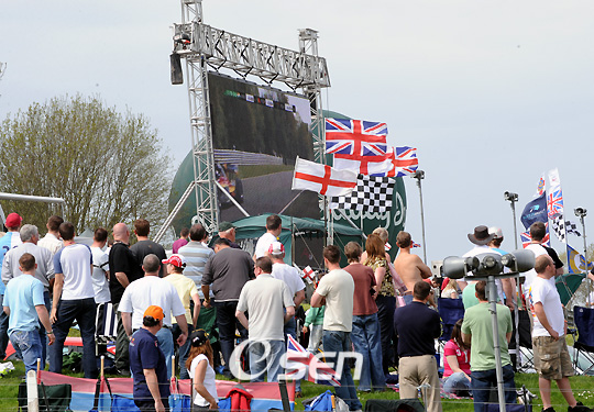 전 세계 25개국만이 참가할수 있는 국가 대항 모터 스포츠카 월드컵 A1GP 경기에 한국의 (주)굿이엠지(대표이사:이혁수)의 자회사인 (주)옴니버스파트너(대표이사:김정용)는 지난 13일 중국 상하이에서 조인식을 갖고, A1 Team Korea의 권리를 획득 2008/9 시즌부터 A1GP에 참가한다. 5일(한국시간) 영국 켄트 브랜즈해치에서 열린 A1GP 2007/8 시즌 피쳐 레이스 경기에서 인도의 나레인 카티케얀이 마지막 라운드피쳐 에서 우승하며 인도팀에 소중한 첫 승을 선물했다. 관중들이 레이싱카가 시선에서 벗어나자 서킷에 설치된 멀티비젼을 통해 경기를 관전하고 있다./영국=김영민 기자ajyoung@osen.co.kr