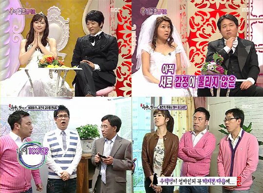 오랜 전통의 일요일 저녁 예능 프로그램 MBC ‘일요일 일요일 밤에(이하 일밤)’가 예전 명성을 찾을까. 한동안 시청률 부진의 늪에 빠져 허우적거리던 '일밤'이 최근 일부 코너의 인기에 힘입어 회생의 기미를 보이고 있다. 4일 방송된 '일밤'은 TNS코리아 조사 결과 전국 시청률 12.8%를 기록했다. 지난달에 비해 겨우 1~2% 상승하는 데 그쳤지만 그 속을 꼼꼼히 들여다보면 알찬 성적이다. 봄철 황금연휴에 가족 단위 나들이가 늘어나면서 전체적인 TV 시청률은 떨어졌기 때문이다. 경쟁 프로인 KBS 2TV '해피선데이'는 15.2%. 계속 벌어졌던 시청률 차가 좁혀지기 시작한 사실도 고무적이다. 총체적인 부진에서 헤어 나오지 못하고 있다. 지난 13일 ‘경제야 놀자’가 조용히 막을 내린 가운데 앞으로 새 코너로 물갈이된 ‘일밤’이 이 난국을 극복할 수 있을지 관심이 모아지고 있다. '일밤'의 최근 분전 배경은 세 코너 가운데 하나인 '우리 결혼했어요'에서 찾을 수 있다. '일밤' 홈페이지 시청자 게시판에 올라오는 대부분 글들은 '우리 결혼했어요' 관련 내용이다. 칭찬 내용이나 호응이 많고 솔비, 알렉스, 신애 등 대부분 출연자들이 깜짝 인기를 얻고 있다. 이에 비해 '경제야 놀자' 대신에 투입된 '일밤생활백과 고수가 왔다'는 이날 방송분에 대해 '방송국이 부동산 투기를 조장하는 것 아니냐'는 시청자 원성만 가득산 채 초반 자리잡기에 애를 먹는 중이다. 이경규 김제동의 '간다투어'도 아직은 '글쎄요' 반응을 벗어나지 못했다. '일밤' 제작진이 밝히는 목표는 '해피 선데이'에게 빼앗긴 일요일 예능 1위 자리를 탈환하는 것이다. 현재 두 프로의 시청률 차는 2.4%포인트까지 줄어들었다. 그러나 마지막 역전타를 날리기에는 '일밤'의 힘이 부족해 보인다. 간판 코너인 '우리 결혼했어요'에 대한 의존도가 지나치게 높은 상황에서 나머지 두 코너가 힘을 보태기는 커녕 논란을 부르는 까닭이다. '일밤'은 '경제야 놀자', '동안클럽' 등 장수코너들이 모두 폐지되고 올해 새 코너들로 물갈이된 상황이다. ‘불가능은 없다’ 후속으로 3월 2일부터 ‘간다투어’가 방송됐으며 장수코너 ‘동안클럽’이 폐지되고 3월 16일부터 ‘우리 결혼했어요’가 전파를 탔다. 가장 늦게 ‘경제야 놀자’ 후속으로는 다방면의 고수를 찾아가 성공 노하우와 정보를 알아보는 ‘고수가 왔다’를 내보내고 있다. '해피선데이'의 강점은 에이스 '1박2일' 에이스에 이어 탁재훈 신정환의 '불후의 명곡'으로 원투펀치를 구성했다는 것. '일밤'이 일요일 예능의 최강자로 복귀하기 위해서는 '우리 결혼했어요' 외의 두 코너가 하루 빨리 자기 자리를 찾는 수 밖에 없을 것으로 보인다. mcgwire@osen.co.kr