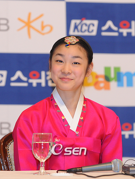 'KCC 스위첸 페스타 온 아이스 2008' 초청선수 기자회견이 15일 오후 서울 소공동 롯데호텔 크리스탈 볼룸에서 있었다. 이 자리에는 로빈 졸코비, 알리오나 사브첸코, 김연아, 브라이언 오서, 아라카와 시즈카, 다카하시 다이스케가 참석했다. 기자회견 중 김연아가 취재진을 향해 장난끼 어린 표정을 짓고 있다./민경훈 기자 rumi@osen.co.kr