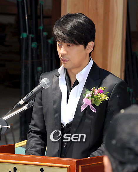 6월 16일 첫 방송 예정인 SBS TV 새 월화드라마 ‘식객’의 촬영현장 공개 행사가 15일 낮 강원도 정선군 강원랜드 내 운암정 신축공사 현장에서 열렸다. 드라마의 중요 촬영지이자 드라마 촬영 후에는 전문 한식점으로 사용될 ‘운암정’의 상량식을 거행하는 장면이었다. 운암정은 4260평방미터(1288평) 넓이의 부지에 주건물인 운암정을 비롯해 주방동 사무동 숙소동 팔각정 등이 들어서 건평만 1567평방미터(474평)에 이른다. 공사비만 약 40억 원이 들어간다. 이날 행사에는 최불암 권오중 김소연 원기준 김성겸 심양홍 등 주연배우들과 김진선 강원도지사, 강원랜드 임직원 등이 참석했다. 봉주 역을 맡은 권오중이 발원문을 낭독하기 위해 단상으로 나서고 있다. /정선=강희수 기자 100c@osen.co.kr