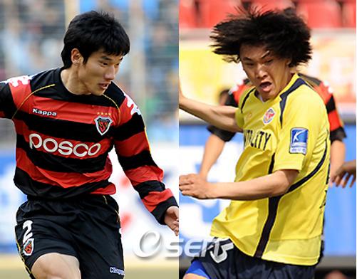 'K리그 유력한 신인왕 후보' 조동건(22, 성남)과 저돌적인 풀백 최효진(25, 포항)이 처음으로 태극마크를 달아 자신의 실력을 국제무대서 떨칠 기회를 얻었다. 20일 대한축구협회는 오는 31일 치러질 2010 남아프리카공화국 월드컵 아시아지역 3차 예선 3차전 요르단과 홈 경기에 출전할 대표팀 명단 25명을 확정해 발표했다. 이 중 새 얼굴은 조동건과 최효진. 처음으로 국가대표팀에 승선하게 된 이들은 K리그에서 돋보인 활약을 인정받으며 허정무 감독의 부름을 받게 됐다. 허 감독은 그동안 주말이면 K리그 경기를 직접 관람하며 선수들을 눈여겨 봐왔다. 특히 슈퍼루키라는 별명을 듣고 있는 조동건은 K리그 데뷔전이었던 지난 3월 29일 제주전서 2골을 작렬시킨 뒤 다시 4월 6일 전남전에서 2골을 터트리며 데뷔전 포함 2경기 연속 2골이라는 리그 사상 첫 신기록을 세울 만큼 데뷔 초부터 관심을 끌었다. 이후 득점은 잠시 주춤했지만 대신 4개의 도움을 기록하며 팀을 이끌고 있는 조동건은 문전에서 움직임이 타고났다는 평가를 들으며 스트라이커로서 성장하는 중. 안정환과 나란히 대표팀 공격을 이끌 것으로 보인다. 또한 K리그 최다골 기록(114골)을 보유한 김도훈 성남 코치로부터 세세한 움직임 하나하나까지 지도를 받는 중이라 대표팀서 그동안 갈고 닦은 실력을 발휘할 기회를 붙잡게 된 조동건이다. 미드필더 최효진도 소속팀에서 맹활약 중으로 그의 그런 활약이 대표팀 승선이라는 보상을 가져다 줬다. 지난 11일 광주전에서 올 시즌 첫 골을 터트린 최효진은 박원재와 함께 좌우 측면 수비와 공격을 책임지며 최근 포항의 상승세를 이끌고 있다. 최효진은 특히 빠른 스피드로 상대 수비를 흐트리고 자신도 적극적인 수비를 보이며 부지런한 플레이로 주목받고 있어 대표팀서도 그의 장점이 요구된다. 지난 1월과 3월 두 차례 대표팀 예비명단에 포함됐지만 최종명단에 이름을 올리지 못하며 고배를 마신 바 있는 최효진이 2전 3기로 붙잡은 태극마크를 어떻게 활용할지 주목된다. 또 자신의 포지션에 해외파들은 물론 리그 최고 선수들까지 버티고 있는 상황에서 제 실력을 어떻게 보여줄지 기대된다. 7rhdwn@osen.co.kr . . . . .