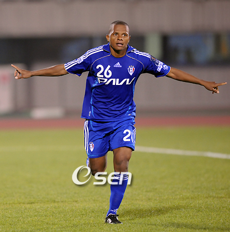 '2008 하나은행 FA컵 전국 축구선수권대회' 32강 수원 삼성과 노원 험멜코리아의 경기가 21일 부천종합운동장에서 벌어져 전 후반 0-0 승부를 가르지 못해 승부차기 까지 가는 고전 끝에 수원이 승부차기 4-2 승리를 거두고 16강에 진출했다. 수원 세번째 키커로 나선 루이스가 승부차기 골을 성공시키고 좋아하고 있다. /부천=황세준 기자 storkjoon@osen.co.kr