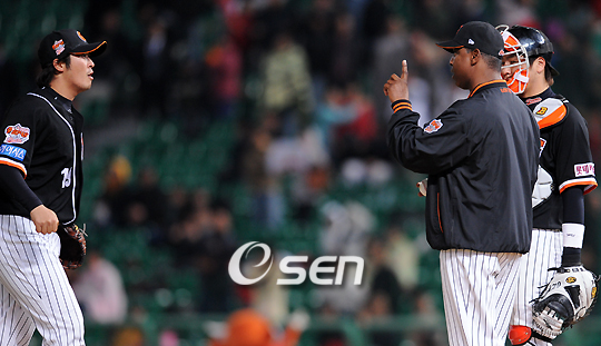 "당연히 이기기 위해 올렸다". 롯데 로이스터 감독이 과감한 승부수를 던졌다. 요즘 블론세이브로 힘겨움을 안고 있던 소방수 임경완을 조기에 투입했다. 그것도 6-5로 아슬아슬한 승부처였다. 상황은 6-0으로 앞서다 5점을 내준 7회말. 1사2루 동점위기를 맞아 로이스터 감독은 강영식을 내리고 누군가에게 손짓을 했다. 불펜에서 몸을 풀고 있던 임경완이었다. 소방수를 7회부터 조기등판시키는 경우는 드문 현상. 그것도 미국물을 먹은 감독이 던진 패였으니 배경을 놓고 잠시 술렁거렸다. 혹시 임경완을 미들맨으로 강등시키는 수순으로 여겨질 정도였다. 임경완은 9회까지 KIA의 8명 타자를 퍼펙트로 틀어막았다. 위력적으로 구석구석 낮게 공을 뿌리며 단 한개의 안타, 단 한개의 볼넷도 내주지 않았다. 9회말 2사후 나지완을 중견수 플라이로 처리하고 확실한 세이브를 성공시켰다. 경기후 로이스터 감독은 "임경완은 7회부터 올린 것은 당연히 게임을 이기기 위해서 올렸다. 임경완 보다 더 마무리를 잘 할 수 있는 투수가 있으면 애기를 해달라. 계속 마무리로 쓸 것이다"며 임경완에게 무한신뢰를 보냈다. 아울러 "오늘 정보명이 큰 일을 해주었다. 중간에 나온 투수들이 잘 막아서 이길 수 있었다. 그러나 전체적으로 공격적인 면에서 아직까지 좋은 야구를 하고 있지 않다"며 야수들에게 불만을 드러냈다. sunny@osen.co.kr . . . . .