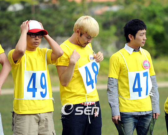 리얼 버라이어티가 추가된 SBS TV ‘있다! 없다?’가 무려 50명이나 되는 연예인을 한 자리에 모았다. 50명이 다리를 묶어 50미터 거리를 30초 안에 달려야 하는 실험 프로젝트를 위해서다. 24일 오후 방송될 코너 ‘할 수 있다! 없다?’에서 선보일 ‘50인 다리 묶어 달리기’는 기네스 기록에도 등재되는 아이템으로 최근 SBS 일산제작센터 운동장에서 촬영됐다. 이 프로젝트를 위해 50명이나 되는 유명 연예인들을 한 자리에 모은 것 자체가 화제가 될 법한데 그래서인지 촬영현장은 열기가 넘쳤다. ‘있다! 없다?’의 한 코너를 이루는 ‘할 수 있다! 없다?’는 ‘실험’을 주제로 은지원 KCM H-유진 줄리엔 강 등 4명의 고정 패널이 프로그램을 이끌어 간다. 은지원과 노홍철, 박현빈이 꽤나 심각한 표정으로 기록 도전을 준비하고 있다. /강희수 기자 100c@osen.co.kr