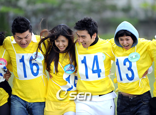 리얼 버라이어티가 추가된 SBS TV ‘있다! 없다?’가 무려 50명이나 되는 연예인을 한 자리에 모았다. 50명이 다리를 묶어 50미터 거리를 30초 안에 달려야 하는 실험 프로젝트를 위해서다. 24일 오후 방송될 코너 ‘할 수 있다! 없다?’에서 선보일 ‘50인 다리 묶어 달리기’는 기네스 기록에도 등재되는 아이템으로 최근 SBS 일산제작센터 운동장에서 촬영됐다. 이 프로젝트를 위해 50명이나 되는 유명 연예인들을 한 자리에 모은 것 자체가 화제가 될 법한데 그래서인지 촬영현장은 열기가 넘쳤다. ‘있다! 없다?’의 한 코너를 이루는 ‘할 수 있다! 없다?’는 ‘실험’을 주제로 은지원 KCM H-유진 줄리엔 강 등 4명의 고정 패널이 프로그램을 이끌어 간다. 김선수 김지혜 이정수 청미가 골인지점을 앞두고 죽을 힘을 다해 달리고 있다. /강희수 기자 100c@osen.co.kr