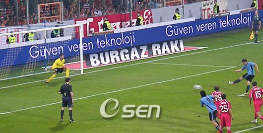 [OSEN=보쿰(독일), 이건 특파원] 유로 2008에서 다시 한 번 돌풍을 노리는 터키가 우루과이와의 평가전에서 2-3으로 패배했다. 터키는 26일(한국시간) 새벽 독일 보쿰에서 열린 평가전에서 선제골을 집어넣었지만 우루과이의 공세를 넘지 못했다. 터키는 순간 집중력에서 적지 않은 문제를 드러내며 유로 2008에서 어려움을 겪을 것으로 보인다. 출발은 산뜻했다. 터키는 전반 12분 아르다 투란의 첫 골로 앞서나갔다. 오른쪽에서 올린 크로스를 투란이 감각적인 헤딩골로 상대의 골문을 연 것. 이후 터키는 상대를 압도하며 경기를 쉽게 풀어나가는 듯 했다. 그러나 수비 집중력이 문제였다. 전반 31분 우루과이의 루이스 수아레스에게 페널티킥을 허용했다. 중앙에서 한 번에 이어진 스루패스를 막지 못한 것. 1-1이 되자 터키는 다시 공점유율을 높였다. 벨로조글루 엠레를 축으로 하는 미드필드진이 경기를 유리하게 끌고나갔다. 후반 들어 터키는 역전골을 만들어냈다. 후반 6분 카베치 니하트가 멋진 프리킥으로 골을 만들어냈다. 터키의 에이스라고 할 수 있을만한 멋진 골이었다. 그러나 터키는 다시 한 번 수비 실수로 한 골을 헌납했다. 수비수 잔 괴칸이 골키퍼 바로 앞에서 공을 뺏기는 실수를 했고 이공을 가뢘 세바스티안 페르난데스가 홀로있는 루이스 수아레스에게 패스해 동점골을 만들었다. 수비진의 집중력 부족으로 인해 동점골까지 내준 터키는 결국 경기 종료 6분 전 역전골을 내주었다. 이미 2골을 넣은 수아레스가 개인기를 통해 페널티킥을 얻어낸 것. 이것을 크리스티안 로드리게스가 가뿐히 성공시키며 승리를 거두었다. bbadagun@osen.co.kr