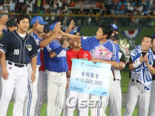 삼성 양준혁(39)는 12년 연속 '베스트 10' 입성에 도전한다. 롯데 거포 이대호(26)는 2년 연속 올스타 최다득표를 노리고 있다. 한국야구위윈회(KBO)는 오는 8월 3일(일) 인천 문학야구장에서 개최되는 프로야구 별들의 축제인 '2008 삼성PAVV 프로야구 올스타전'에 출전할 올스타를 선발하는 '베스트10' 인기투표를 실시한다. 삼성의 양준혁은 12년 연속 베스트 10을 노린다. 만일 선정된다면 이만수 SK 코치(82~93년, 12년 연속)의 기록과 같아진다. 양준혁은 이와 함께 통산 13번째 베스트 10에 도전한다. 부진으로 2군에서 조정중이지만 여전히 높은 인기를 누리고 있는 만큼 가능성은 충분하다. 또 한 명의 주목 선수는 롯데 거포 이대호. 지난 해 역대 최다득표(34만1244표)를 얻은 이대호가 자신의 기록을 경신할 수 있을 지 관심을 모으고 있다. 올해 고공비행중인 롯데의 간판선수로 절대적인 인기를 누리고 있어 2년 연속 최다득표 경신이 기대되고 있다. 원년부터 실시된 올스타전 베스트 10 인기투표에서 83년 OB 신경식은 무려 89.9%를 얻어 역대 최고 득표율를 기록하고 있다. 좀처럼 깨지기 힘든 기록이다. 이만수와 양준혁 선수는 역대 최다인 4차례의 최다 득표 선수로 선정된 바 있다. 베스트 10 인기투표는 27일(화)부터 7월 13일(일)까지 각 경기장에서 실시된다. 이어 6월 3일(화) 낮 12시부터 7월 20일 오후 6시까지 인터넷 및 모바일을 통해서도 동시에 실시된다. 이번 투표를 통해 동군(SK, 두산, 삼성, 롯데)과 서군(한화, KIA, LG, 우리) 양팀의 포지션별 구단 추천선수 (총 80명) 중 최다득표선수 10명씩 총 20명이 선정 된다. 베스트 10과는 별도로 양팀 감독(동군 SK 김성근 감독, 서군 한화 김인식 감독)의 추천선수 10명씩을 더해, 동.서군 총 40명의 올스타가 구성된다. sunny@osen.co.kr 양준혁이 지난해 올스타전서 승리한 동군 대표로 우승 상금을 받고 동료들과 즐거워하는 모습. . . . . .