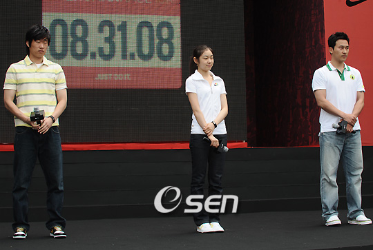 박지성(27, 맨체스터 유나이티드) 김연아(18, 군포 수리고) 김승현(30, 대구 오리온스)이 27일 오전 서울 성북동 삼청각에서 '나이키+휴먼레이스' 서울 이벤트 홍보대사로 위촉됐다. 오는 8월 31일 열리는 ‘나이키+휴먼레이스’는 4개 대륙 25개 도시에서 100만 여 명이 참가하는 가운데 도심을 10㎞ 달리는 러닝 이벤트다. 박지성 김연아 김승현이 취재진을 향하여 포즈를 취하고 있다./김영민 기자ajyoung@osen.co.kr