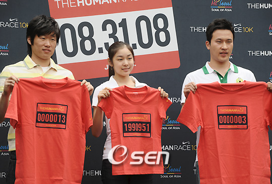 한국을 대표하는 스포츠스타 박지성(27, 맨체스터 유나이티드)과 김연아(19, 군포수리고) 그리고 김승현(30, 대구 오리온스)이 만났다. 27일 오전 서울 성북구 삼청각 일화당에서 열린 '나이키+휴먼 레이스 10K' 서울 개최 발표식에 박지성 김연아 김승현은 홍보대사의 자격으로 참석했다. '나이키+휴먼 레이스 10K'는 러닝과 대규모 콘서트가 결환된 러닝 이벤트로 서울을 비롯해 LA, 뉴욕, 런던, 마드리드, 파리, 이스탄불, 멜버른, 벤쿠버 등 전세계 4개 대륙 25개 도시에서 동시에 개최된다. 이 대회에는 랜스 암스트롱, 폴라 래드클리프 등 세계 유수의 스포츠 스타들과 각국의 문화계 인사 등이 각 도시에서 일반 참가자들과 함께 레이스에 참가하며, 전세계 참가자들의 숫자에 비례해 기부금을 쌓아 공익단체에 기부할 예정이다. 타이베이를 시작으로 LA에서 종료되는 이 행사에서 서울 이벤트는 8월 31일 오후 6시 서울시청 앞 광장에서 스타트를 끊는다. 이 행사에는 전 세계에서 약 100만 명이 그리고 서울에서는 서울시와 나이키 코리아의 공동 개최로 약 2만 명의 참가자들이 함께 할 예정이다. 이번 '나이키+휴먼 레이스 10K'에 대해 박지성은 "운동으로 많은 사람과 만날 수 있을 뿐만 아니라 도움을 줄 수 있다는 것에 큰 기대를 하고 있다"며 "2002년 월드컵 때 서울시청 앞 광장에서 축구로 보여줬던 열정을 이번에도 기대하겠다"고 말했다. 직접 '나이키+휴먼 레이스'에 출전 의사를 밝힌 김승현은 "100만 명이 함께 참여하는 행사에 참여할 수 있다는 사실만으로 기쁘다"고 말했다. 김연아 역시 "러닝이 지루하다는 생각을 평소에 했다. 그러나 이번 행사는 러닝이 지루한 것이 아니라 축제가 될 수 있다는 증거"라며 "6월에 캐나다로 출국해 함께 할 수 없지만 모두의 성공을 응원하겠다"고 강조했다. 또한 이날 박지성을 처음 만났다고 밝힌 김연아는 "박지성 선수가 더욱 노력해서 우리나라의 이름을 더욱 빛내줬으면 좋겠다“며 "올해 10월부터 11월에 있을 시즌을 대비해 좋은 성적을 거두도록 노력하겠다“는 덕담을 남겼다. stylelomo@osen.co.kr 박지성 김연아 김승현이 자신의 고유번호가 새겨진 셔츠를 들고 취재진을 향해 포즈를 취하고 있다./김영민 기자ajyoung@osen.co.kr
