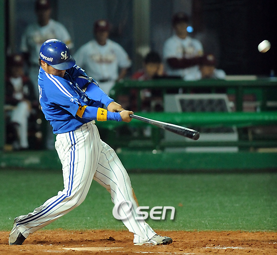 삼성이 우리 히어로즈에 무차별 맹폭을 가하며 4위로 올라섰다. 삼성은 27일 목동구장서 열린 2008 삼성 PAVV 프로야구 우리 히어로즈와의 원정경기서 1회와 6회 두 번이나 타자 일순하며 장단 21안타를 몰아쳐 15-4로 대승을 거뒀다. 이로써 삼성은 시즌 25승 24패로 5할 승률을 돌파, 이날 롯데(26승 20패)에 패한 한화(25승 25패)를 0.5경기차로 따돌리고 두 경기 만에 4위로 올라섰다. 삼성은 이날 히어로즈 마운드를 상대로 무차별 맹폭을 가했다. 지난 4월 27일 사직 롯데전의 종전 올 시즌 팀 한 경기 최다안타 기록(17안타)까지 갈아치웠다. 볼넷도 10개나 얻어냈다. 반면 히어로즈는 이날 패배로 지난 20일 제주 SK전 이후 5연패하며 시즌 19승 29패, 7위 자리에 그대로 머물렀다. 지난 6일 두산경기 이후 목동 7연패, 제주경기 포함 홈 11연패에 빠졌다. 삼성은 상대 선발 김수경의 난조 속에 1회에만 대거 5점을 뽑으며 기선잡기에 나섰다. 선두타자 박종호의 2루타로 포문을 연 삼성은 1사 만루에서 터진 채태인의 2타점 우측 2루타로 간단하게 리드를 잡았다. 계속된 2, 3루에서 박진만의 좌중간 적시타로 2점을 보탠 삼성은 김재걸의 2루수 내야안타로 5점을 올렸다. 그러자 히어로즈가 반격에 나섰다. 0-5로 뒤진 2회 무사 1, 3루에서 삼성 선발 오버뮬러의 폭투 때 2루타를 치고 나간 정성훈이 홈을 밟았고 대타 강병식의 유격수 땅볼로 추가점을 올렸다. 3회에는 올 시즌 6번째 연속타자 홈런으로 4-5까지 추격에 나섰다. 1사 후 타석에 들어선 브룸바가 비거리 125m자리 중월솔로포(시즌 9호)를 때리자 다음에 나선 정성훈이 좌측 담장 넘기는 비거리 120m짜리 솔로 아치(시즌 2호)로 뒤를 받쳤다. 삼성은 1점차로 쫓기자 4회 곧바로 3득점하며 승기를 굳혔다. 무사 만루에서 채태인의 밀어내기 볼넷으로 6-4로 만든 뒤 박진만의 중견수 희생플라이, 김창희의 1루 땅볼로 8-4까지 점수를 벌렸다. 또 삼성은 6회 2사 후 3번의 만루 기회에서 2루타 1개 포함 5안타, 3볼넷으로 다시 5득점했고 13-4로 앞선 8회에는 박석민의 쐐기 투런포까지 터졌다. 삼성 선발 오버뮬러는 3이닝 동안 6피안타(2홈런) 1폭투 2삼진 1볼넷으로 4실점해 승패를 기록하지 못했다. 대신 4회부터 나와 2이닝을 1피안타 2삼진으로 무실점한 권혁이 승리투수가 됐다. 시즌 2승째. 히어로즈 선발 김수경은 1이닝 동안 몸에 맞는 볼 1개를 포함해 5피안타 1볼넷으로 5실점, 시즌 2패째(2승)를 기록했다. letmeout@osen.co.kr 13-4로 앞선 8회초 무사 주자 1루에서 삼성 박석민이 투런 홈런을 치고 있다. /목동=민경훈 기자rumi@osen.co.kr
