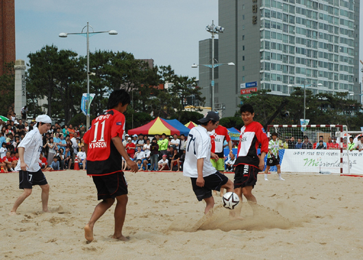 프로축구 부산 아이파크가 힘든 훈련을 잠시 잊고 부산 해운대 백사장에 총 출동한다. 부산은 오는 8일 부산 해운대 백사장에서 펼쳐질 ‘제3회 해운대 그랜드호텔배 비치사커대회’는 해운대 모래축제와 함께하는 여름맞이 행사로 부산아이파크는 연예인 축구단인 레알 제니스를 상대로 축구 묘기를 선보이게 된다. 친선경기로 펼쳐질 이번 경기는 각 팀이 5명씩 출전해 15분씩 2차례 진행되며 부산지역의 많은 팬들에게 즐거움을 선사하기 위해 황선홍 감독과, 이정효, 이강진, 김창수, 이승현 등 부산아이파크의 간판 스타들이 주축이 돼 참여하고 팬사인회도 개최될 예정이다. 이번 이벤트 경기에 참석하는 김창수는 "부산시민과 함께 하는 행사에 초대되어서 기쁘게 생각한"면서 "부산에 와서 처음 바다를 볼 수 있는 기회가 생겼다. 그런데 바다에 들어가도 되나?"는 다소 엉뚱한 질문을 던지기도 했다. 부산 아이파크는 이번 비치사커 이벤트 경기 후에도 K리그 순위 재도약을 위해 부산 클럽하우스에서 하루 4차례 강도 높은 훈련에 계속해서 매진할 계획이다. 10bird@osen.co.kr 부산 아이파크 제공.