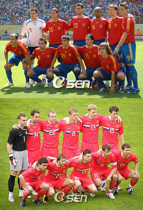 스페인이 메이저대회 징크스를 극복할 수 있을까. 월드컵보다 더 치열하다는 2008 유럽축구선수권대회의 개막이 하루 앞으로 다가왔다. '무적함대' 스페인이 8강에 진출할 게 거의 확실한 D조는 나머지 한 자리를 놓고 세 팀의 혈투가 예고되고 있다. 유로2004 우승팀 그리스(FIFA랭킹 8위)와 '바이킹군단' 스웨덴(30위) 그리고 '히딩크매직' 러시아(24위)의 치열한 쟁은 D조를 또 다른 죽음의 조로 만들고 있는 이유다. ▲ '무적함대' 스페인, 메이저 대회 징크스 타파를 노린다 스페인은 유로 2008의 유력한 우승 후보 중 하나다. 그러나 메이저 대회에서 어떤 성적도 내지 못했던 징크스는 스페인에 대한 평가를 인색하게 만드는 요소다. 스페인은 유로64 우승 이후 16강 혹은 8강에서 탈락하는 것이 일상사가 되고 말았다. 그러나 루이스 아라고네스 감독의 지휘 속에서 환골탈태한 스페인은 '우리는 달라졌다'고 외치고 있다. 스페인의 강점은 역시 특유의 오밀조밀한 패싱 플레이다. 짧은 패스를 반복하며 상대팀 수비를 무너뜨리는 스페인은 세스크 파브레가스, 다비드 실바, 샤비 알론소, 안드레스 이니에스타를 중심으로 다시 한 번 우승을 노리겠다는 기세다. 호안 카프데비야와 카를로스 마르체나, 카를레스 푸욜, 세르히오 라모스가 구축한 짠물 수비까지 고려하면 스페인이 유로 2008에서 '역사창조'를 노리는 지 알 수 있다. 또 그 뒤에는 '야신' 이케르 카시야스가 버티고 있다. 8강 진출을 기본으로 내심 우승을 노리고 있는 스페인도 고민은 있다. 바로 민족간의 갈등을 슬기롭게 극복할 수 있을지의 여부다. 여기에 페르난도 토레스와 다비드 비야의 부상이 가볍지 않다면 스페인의 도전은 실패로 끝날 가능성도 있다. ▲ '디펜딩 챔피언' 그리스, 유로2004의 재현을 꿈꾼다 유로2004는 이변의 연속이었다. 그리고 그 중심에는 '오토대제' 오토 레하겔 감독이 이끄는 그리스가 있었다. 파죽지세로 앙리 들로네컵을 손에 쥐었던 그리스는 유로 2004의 재현을 꿈꾸고 있다. 레하겔 감독은 그리스에 탄탄한 수비를 선물했다. 포백과 스리백 등 전술의 종류에 상관없이 놀라운 완성도를 보이는 수비에서 시작되는 역습은 그리스를 무시할 수 없는 이유다. '그리스식 토탈사커'라고 말할 정도로 유기적으로 움직이는 그리스는 수비가 공격으로 공격이 수비로 변하며 상대를 괴롭힌다. 그러나 딱히 '해결사'라고 불릴 수 있는 선수가 없다는 점에서 그리스의 유로 2008 우승은 쉽지 않아 보인다. 예선 9경기에서 5골을 기록한 테오파니스 게카스의 활약에 기대가 큰 이유다. ▲ '바이킹군단' 스웨덴, 8강이 목표 스웨덴은 세대 교체에 실패한 대표적인 팀이다. 유로 2008에 출전하는 스웨덴의 평균 연령이 30.1세에 달한다는 것이 그 증거다. 바꿔 말하면 단기전에서 노장의 힘을 노린다는 말일 수도 있다. 그렇게 스웨덴은 유로 2008의 복병으로 8강 진출을 노리고 있다. 스웨덴은 거친 축구를 구사한다. 북유럽의 스웨덴이 거친 축구를 하는 것이 새삼스러울리 없다. 스웨덴은 울로프 멜베리, 프레드릭 륭베리, 즐라탄 이브라히모비치 등 각 포지션의 중추를 해당하는 선수들이 거치면서도 세밀한 축구를 펼쳐 상대를 압도한다. 여기에 노장의 경험이 녹아들 경우 스웨덴은 결코 무시할 수 없는 팀으로 태어난다. 그러나 지나치게 노장에 의존할 뿐만 아니라 주전과 비주전의 격차가 너무 큰 것이 스웨덴의 고민이다. 만약 주축 선수들이 부상을 당할 경우 스웨덴은 맥없이 탈락할 가능성이 있다. ▲ '히딩크매직' 러시아, 히딩크의 힘을 믿는다 유럽선수권에서 첫 우승의 감격을 누린 팀은 러시아의 전신 소련이다. 그리고 러시아는 거스 히딩크 감독의 힘을 빌어 제 2의 전성기를 노리고 있다. 러시아의 무기는 역시 단단한 조직력이다. 히딩크 특유의 팀 장악력으로 완성된 러시아의 조직력은 화려한 스타가 없어도 자신만의 강점을 발휘하고 있다. 여기에 UEFA컵 우승에 빛나는 제니트 상트페테르부르크 소속의 비아체슬라프 말라페예프, 알렉산더 아뉴코프, 콘스탄틴 지리아노트, 안드레이 아르샤빈, 파벨 포그레브니야크의 활약에 큰 기대를 걸고 있다. 전력의 반이라고 할 수 있는 안드레이 아르샤빈의 본선 2경기 결장과 파벨 포그레브니야크의 부상을 어떻게 극복할 지가 유로 2008을 앞둔 러시아의 변수가 될 전망이다. stylelomo@osen.co.kr 스페인(위)-러시아.