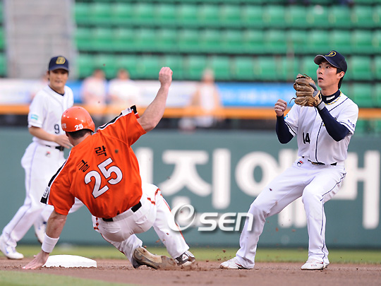 [OSEN=이상학 객원기자] “뛸 수 있는 선수들이 생긴 덕이지.” 한화는 전통적으로 장타에 의존하는 팀이었다. 희생번트나 히트앤드런 같은 작전은 물론이고 도루도 많지 않았다. 베이스를 훔치는 것보다 장타 한 방으로 여유있게 베이스를 도는 것을 선호한 팀이었다. 김인식 감독이 지휘봉을 잡은 지난 3년간 한화는 도루가 175개로 8개 구단 중 가장 적었지만 대신 홈런이 371개로 가장 많았다. 올 시즌에도 한화는 희생번트가 적고 홈런이 많은 건 여전하다. 다만 도루가 한화의 새로운 공격옵션으로 추가됐다. 한화는 올 시즌 59경기에서 50도루를 기록했다. 8개 구단 전체 6위에 해당하는 기록이지만 7~8위 삼성(29개)·우리(28개)와 비교하면 한화의 도루는 적지 않은 편. 더욱 놀라운 건 지난해 한화의 도루가 정확히 50개였다는 점이다. 올 시즌 페넌트레이스가 절반도 지나지 않았지만, 벌써 지난해 도루 개수에 도달했다. 심지어 도루성공률도 80.6%에 달한다. 8개 구단 유일의 도루성공률 8할대로 이 부문 전체 1위에 올라있다. 한화를 제외한 나머지 7개 구단 평균 도루성공률은 65.7%에 불과하다. 한화를 바꿔 놓은 선수는 올 시즌 새로 영입된 덕 클락과 추승우다. 못 하는 것이 없는 ‘슈퍼맨’ 클락은 벌써 16도루를 성공시키며 이 부문 공동 4위에 랭크돼 있다. 도루실패는 단 2차례. 도루성공률은 무려 88.9%에 달한다. 추승우도 만만치 않다. 추승우는 팀 내에서 클락 다음으로 많은 9개 도루를 기록하고 있다. 도루실패는 딱 1차례로 도루성공률은 정확히 90.0%나 된다. 추승우는 “도루 개수가 많지 않아 도루성공률은 큰 의미가 없다”면서도 “도루는 발도 빨라야 하지만 타이밍이 가장 중요하다”고 설명했다. 김인식 감독도 클락과 추승우의 가세가 발야구를 펼치는 결정적인 요인이라고 밝혔다. 김 감독은 “그동안 팀에서 뛸 만한 선수들이 없어서 도루를 하지 않았다. 내가 도루를 하지 말라고 한 것이 아니라 선수구성상 뛰는 야구를 할 수 없었다. 하지만 올 시즌에는 클락과 추승우가 들어와 도루를 적극적으로 하고 있다. 두 선수에게는 그린라이트를 줬다. 그만한 도루 센스를 갖추고 있는 선수들이다. 두 선수가 뛰다 보니 다른 선수들도 슬금슬금 눈치를 봐가며 도루를 하고 있다”고 너털웃음을 지었다. 지난해까지 8년간 통산 도루가 24개밖에 되지 않았던 이범호가 올 시즌 벌써 8개의 도루를 기록하고 있는 것은 대단히 이색적인 대목이 아닐 수 없다. 도루실패도 1차례밖에 없다. 연속출장기록이 마감된 아쉬움을 20-20 클럽으로 채울 기세다. 유지훤 수석코치는 “도루를 하는 선수들이 많이 들어와 기존 선수들도 뛸 수 있다는 생각이 드는 모양이다. 도루도 전염병 같다”고 웃었다. 이범호도 “발은 빠르지 않아도 상대 눈치를 봐가며 도루를 하고 있다”고 말했다. 이제 더 이상 한화는 굼벵이 군단이 아니다. . . . . .