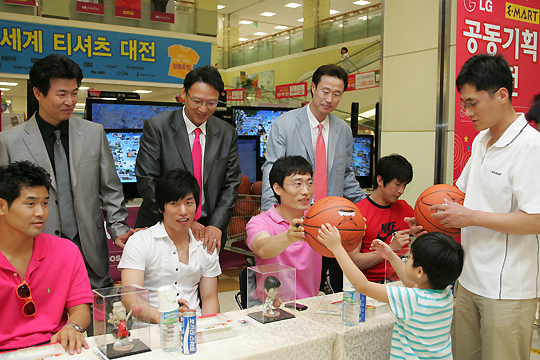 창원 LG는 LG전자 창립 50주년을 기념하며 지난 7일 오후 3시부터 4시까지 1시간 여 동안 서울의 이마트 월계점에서 성황리에 팬사인회를 가졌다. 이날 팬사인회서는 예상을 훨씬 넘는 팬들이 찾아와 예정된 시간을 연장해야 했고 사인볼 등 기념품이 바닥나자 스포츠샾에서 농구공을 바로 구매해 와 사인을 요청하는 팬들로 준비한 관계자들을 깜짝 놀라게 했다. 팬 사인회에는 현주엽을 비롯한 주전 선수들이 참여했으며 강을준 감독과 김대의, 오성식 코치도 행사장을 찾아 선수들과 함께 팬들과 인사를 나누었다. 10bird@osen.co.kr 창원 LG 제공.