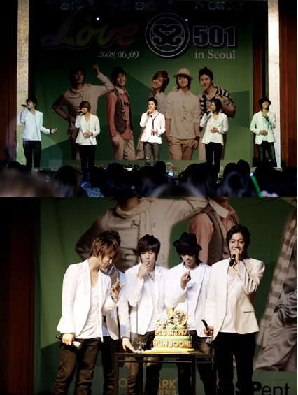성공적인 일본 데뷔를 마친 SS501이 서울에서 일본 팬들과 특별한 팬미팅을 가졌다. SS501은 9일 서울 소공동 롯데호텔에서 ‘LOVE SS501’이라는 이름으로 약 250여 명의 일본 팬들과 만나 일본 내 인기를 실감했다. 일본에서 발표한 발라드 곡 ‘Gleaming Star’(글리밍 스타)로 오프닝 무대를 장식한 SS501은 바다 건너 와 준 일본 팬들을 위해 여러 가지 이벤트를 직접 구상했다. 멤버들은 직접 사인한 소장품을 준비하는가 하면 팬들과 함께 댄스타임을 갖는 등 잊지 못할 소중한 추억을 선물했다. 팬들은 이날 팀의 리더 김현중의 생일(6월 9일)과 SS501의 데뷔 3주년을 축하하기 위해 케이크와 선물을 증정했다. 팬들의 뜻하지 않은 생일 축하에 김현중은 기쁨을 감추기 못하여 거듭 감사 인사를 전했다. 앵콜곡 ‘Bye Bye’로 팬미팅은 마무리 됐고 이후 저녁 식사 시간에는 멤버들이 직접 배식을 하겠다고 자청해 팬들에게 음식을 배식했다. 팬들은 “예상치 못했는데, 멤버들의 호의에 너무 감동했다. 멀리까지 온 보람이 있다”며 행복한 미소를 지었다. 이번 팬 미팅을 진행한 (주)스토리파크 측 관계자는 “국내에서 해외 팬들을 초청해 팬 미팅을 여는 것은 드문 일이다. 이렇게 많이 찾아 주리라 예상치 못했다. 팬들을 생각하는 SS501의 마음이 잘 전달된 것 같다”고 밝혔다. miru@osen.co.kr