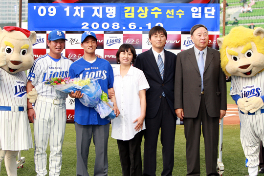 "역대 삼성 내야수 중 가장 뛰어난 선수가 되고 싶다". 2009년 삼성 라이온즈 1차 지명을 받은 경북고 유격수 김상수(18)가 입단식을 가진 뒤 당찬 각오를 드러냈다. 10일 삼성과 계약금 2억 8000만 원, 연봉 2000만 원에 입단 계약을 체결한 김상수는 우투우타 유격수로 작은 체구(178cm 68kg)에도 불구하고 정교한 타격과 파워가 좋고 발이 빨라 도루 능력과 수비 범위가 넓다는 평가를 받고 있다. 올 시즌 전국 대회 6경기에 출장, 타율 4할5푼5리(22타수 10안타) 2타점 6도루를 기록했다. 김상수는 이날 한화와의 홈 경기에 앞서 대구구장에서 김응룡 삼성 라이온즈 사장의 환영 속에 입단 기념 행사를 가진 뒤 "연습이나 경기할때와는 기분이 색다르다"고 소감을 밝혔다. 최근 미국 프로야구 텍사스 레인저스의 러브콜을 받았으나 삼성을 선택한 이유에 대해 "어릴 적부터 뛰고 싶었던 삼성에서 꿈을 펼치고 싶다"고 대답했다. 삼성에서 김상수에 거는 기대는 남다르다. 김상수는 2001년 프로 무대에 뛰어든 박한이(29, 외야수)에 이어 역대 신인 야수 가운데 두 번째로 많은 계약금을 받았다. 특히 빠른 발과 안정된 수비를 바탕으로 1군 무대에서도 활력소를 불어 넣을 것으로 전망된다. 빙그레 (한화 전신) 시절 이강돈, 이정훈과 더불어 다이나마이트 타선을 이끌었던 강정길 경북고 야구부 감독은 "좋은 선수를 뺏긴 것 같다"고 농담을 던진 뒤 "오랫동안 선수로 뛸 재목"이라며 제자의 성공을 기원했다. what@osen.co.kr 삼성 라이온즈 제공.