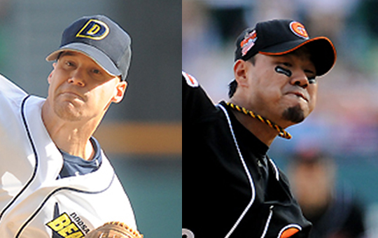 두산 베어스의 외국인 우완 저스틴 레이어와 롯데 자이언츠의 '해외파' 송승준이 선발 맞대결을 펼친다. 지난 5월 게리 레스를 대신해 두산의 새 외국인 투수로 한국 땅을 밟은 레이어는 올시즌 2패 방어율 6.52를 기록 중이다. 방어율이 높긴 하지만 첫 등판인 5월 31일 KIA전 1회서 6실점 했다는 것을 제외하면 8⅔이닝 동안의 방어율은 1.04로 뚝 떨어진다. 레이어의 강점은 직구의 움직임에 있다. 레이어는 다른 선수들과 달리 직구가 여러가지 형태로 꺾이는 모습을 보여준다. 가장 많은 빈도를 보여주는 것은 싱킹 패스트볼로 가라앉는 형태다. 홈플레이트 근처에서 가라앉기 때문에 타자들이 히팅 포인트를 맞추기 까다로운 스타일이다. 예리하게 꺾어지는 컷 패스트볼도 나쁘지 않다. 그러나 직구 스피드가 나오지 않으면 레이어의 위력은 그만큼 반감된다. 밀워키 시절 97마일(155.2km)의 직구를 던지기도 했던 레이어지만 당시 그의 보직은 중간계투였다. 레이어가 완급 조절이 필수적인 선발로도 좋은 직구를 던진다면 두산의 외국인 선수 농사는 성공이 되겠지만 반대의 경우는 올시즌 큰 골칫거리가 될 전망이다. 레이어에게 11일 경기는 올시즌 활약을 가늠하는 분수령이 될 전망이다. 송승준은 올시즌 7승 3패 방어율 3.95로 성공적인 2년 차 시즌을 보내고 있다. 피안타율이 2할9푼5리로 높은 편이지만 66이닝 동안 기록한 52개의 탈삼진 능력은 그의 묵직한 구위를 알 수 있게 한다. 여기에 올시즌 두산전 성적 또한 2승 무패 방어율 2.35로 탁월하다. 15⅓이닝 동안 15개의 안타를 허용하기는 했지만 집중타를 맞지 않는 위기관리 능력과 구위가 절묘하게 조화되었다. 그러나 송승준의 불안 요소는 팀 내부에 있다. 송승준의 올시즌 득점 지원률은 5.86으로 규정이닝을 넘긴 투수 중 전체 5위에 해당한다. 롯데 타선은 시즌 초 활화산같은 공격력을 과시하며 송승준의 어깨를 가볍게 했으나 최근 6경기서 9점만을 뽑아내는 저조한 득점력을 보여주고 있다. 송승준은 지난 5일 사직 두산전서도 2점에 그친 타선 지원에도 8⅓이닝 7피안타 1실점으로 시즌 7승째를 따냈다. 타선 부진에 아랑곳 없이 제 구위를 보여주는 것이 송승준에게 가장 중요하다. chul@osen.co.kr . . . . .