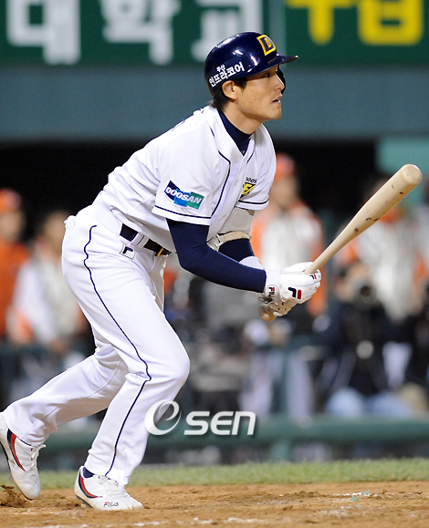 주전 유격수 자리를 되찾겠다는 포효였을까. 두산 베어스는 9회말 극적인 순간 터진 이대수의 결승타에 힘입어 롯데 자이언츠를 5연패 나락으로 빠뜨렸다. 두산은 11일 잠실구장서 열린 2008 삼성 PAVV 프로야구 롯데전서 9회 터진 이대수의 끝내기 결승타에 힘입어 롯데에 5-4로 신승했다. 두산은 이날 승리로 4연승을 달리는 동시에 2위(32승 24패, 11일 현재) 자리를 굳건히 지켰다. 반면 롯데는 최근 5연패를 당하며 시즌 27패(30승)째를 떠안았다. 1점을 먼저 따낸 팀은 두산이었다. 두산은 2회말 홍성흔의 유격수 내야안타와 상대 1루수 이대호의 실책으로 이성열이 1루에 살아 나가면서 만든 2사 1,3루 찬스서 '새로운 복덩이' 최승환의 1타점 우전 적시타로 선취점을 올리는 데 성공했다. 3회까지 5안타를 치고도 0-1로 끌려가던 롯데는 4회초 2사 후 만회점을 뽑아내며 동점을 만드는 데 성공했다. 롯데는 손광민의 유격수 내야안타와 박기혁의 우전안타로 맞이한 2사 1,3루서 톱타자 정수근의 좌전 적시타에 힘입어 1-1을 만들어냈다. 그러나 뒤를 이은 김주찬이 3루 땅볼에 그치며 역전에는 실패했다. 동점을 허용한 두산이 리드를 잡는 데는 오래 걸리지 않았다. 두산은 4회말 2사 만루 찬스서 터진 김재호의 2타점 중전안타에 힘입어 다시 분위기를 가져왔다. 김재호는 위기에 몰린 송승준이 고육책으로 택한 직구를 공략했고 이는 두산의 3-1 리드를 가져오는 귀중한 타점이 되었다. 두산이 5회 1사 1루서 김현수의 좌익수 방면 1타점 2루타로 4-1을 만들자 롯데 또한 6회 1사 1,3루서 박기혁의 1타점 좌익수 희생플라이로 2-4를 만들며 두 점차까지 추격했다. 경기 전 "쉬고 있던 계투진을 동원하겠다"라고 밝힌 김경문 감독은 선발 저스틴 레이어를 주저없이 마운드서 내리고 좌완 금민철을 시작으로 계투진을 투입하기 시작했다. 그러나 롯데에는 이대호가 있었다. 지난 10일 경기까지 6월 7경기서 9푼5리 1타점으로 부진한 모습을 보였던 이대호는 7회초 2사 2루서 두산의 세번째 투수 이재우를 상대로 깨끗한 1타점 우전 적시타를 터뜨리며 3-4, 한 점차까지 따라붙는 귀중한 타점을 올렸다. 턱 밑까지 따라잡힌 두산은 8회초서도 1사 만루 위기를 맞았다. 그러나 두산의 네 번째 투수 임태훈은 정수근과 김주찬을 각각 3루수 파울플라이, 삼진으로 침착하게 돌려 세우며 팀의 리드를 지켜냈다. 9회서 롯데는 동점을 만드는 데 성공했다. 롯데는 조성환의 볼넷과 이대호의 좌전 적시타로 무사 1,2루 찬스를 잡은 뒤 카림 가르시아의 큼지막한 우익수 플라이에 주자들이 한 루씩 진루했다. 뒤를 이은 강민호까지 적절한 1타점 우익수 희생플라이를 기록하며 4-4, 극적인 동점을 만들어냈다. 경기를 끝낸 것은 이대수였다. 이대수는 9회말 1사 1,2루서 외야 우중간을 가르는 통렬한 1타점 적시타를 때려냈다. 5-4, 경기는 두산의 승리로 이어졌다. 한편 두산은 2회말 홍성흔의 안타로 팀 통산 4만 루타(역대 4번째)를 기록하는 등 11일 경기서 겹경사를 맞았다. chul@osen.co.kr . . . . .