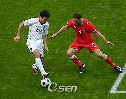 [OSEN=제네바, 이건 특파원] 포르투갈에는 화려한 양 날개만 있는 것이 아니었다. 중앙에서 이들의 움직임을 지켜보며 활용할 줄 아는 지휘관도 있었다. 바로 포르투갈의 공격형 미드필더 데쿠를 말하는 것이다. 12일(한국시간) 오전 제네바에서 열린 포르투갈과 체코와의 A조 경기에서는 크리스티아누 호나우두, 시망 사브로사의 양 날개보다 중앙에 위치한 데쿠의 활약이 빛났다. 데쿠는 이 날 경기에서 자신의 기술과 시야를 마음껏 발휘했다. 양 날개가 상대 수비수의 압박 수비에 막히자 그는 직접 돌파를 통해 공격의 선봉에 섰다. 리드미컬한 드리블과 슈팅 타이밍은 체코의 수비형 미드필더들이 뒷걸음칠 수 밖에 없게 했다. 이 결과 포르투갈은 중원을 손쉽게 장악할 수 있었다. 데쿠는 전반 8분만에 첫 골을 뽑아냈다. 호나우두가 동료 선수와 2대1 패스를 통해 슈팅한 공이 체흐의 몸을 맞고 나오자 달려들어가 마무리한 것. 이후 1-1이 된 상황에서 데쿠는 후반 24분 날카로운 중거리슈팅을 날리며 공격의 흐름을 이어갔다. 데쿠의 진가가 나타난 것은 후반 17분 상황. 페널티 에어리어 오른쪽에서 공을 잡은 데쿠는 공간이 빈 호나우두에게 정확한 패스를 연결해 역전골을 이끌어냈다. 이외에도 데쿠는 활동량에서도 발군의 활약을 펼쳤다. 그는 90분간 11.03km를 뛰며 팀 내 최다 활동량을 기록했다. 그의 종횡무진 활약에 포르투갈은 난적 체코를 손쉽게 물리칠 수 있었다. bbadagun@osen.co.kr