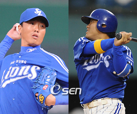 삼성 라이온즈 이상목(37, 투수)과 박석민(23, 내야수)이 5월 최고의 활약을 펼친 선수로 선정돼 상금 100만 원씩 받았다. 이상목과 박석민은 12일 대구구장에서 열리는 한화와의 홈경기에 앞서 이마트가 후원하고 대구 프로야구 기자단이 선정한 '5월의 우수 투수-타자상'을 수상했다. 지난 시즌이 끝난 뒤 롯데에서 퇴출 통보를 받은 이상목은 삼성과 연봉 1억 원에 입단 계약을 체결, 지난달 6경기에 등판해 4승 1패(방어율 3.78)를 거두며 팀의 실질적인 에이스 노릇을 했다. 8개 구단 최연소 4번 타자로 자리매김한 박석민은 지난달 26경기에 출장, 타율 3할2푼7리(98타수 32안타) 6홈런 20타점 19득점 1도루로 맹타를 휘둘렀다. what@osen.co.kr 이상목-박석민.