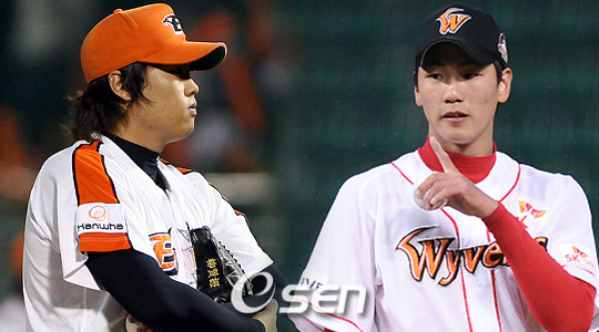 두 명의 '괴물' 류현진(21, 한화)과 김광현(20, SK)이 동시에 출격한다. 이에 따라 오는 6월말 직접 맞대결이 펼쳐질지에 대해서도 관심이 뜨거워질 전망이다. 류현진은 17일 대전 롯데 홈경기에, 김광현은 같은 날 잠실 두산 원정경기에 각각 선발로 예고됐다. 각각 다른 장소에서 펼쳐져 직접 맞대결을 펼치지는 않는다. 하지만 같은 시간대에 마운드에 오르는 만큼 그 결과에 야구팬들의 시선이 모아지고 있다. 붙박이 선발로 베이징올림픽 대표팀이 기정사실화되고 있는 둘은 지난 시즌 김광현이 프로에 입문하면서부터 좌완 기대주로 항상 비교가 돼 왔다는 점에서 흥미를 끌고 있다. 더구나 김광현이 올 시즌 SK의 에이스로서 약진, 류현진의 아성에 도전장을 내밀며 둘의 맞대결은 더욱 관심사로 떠올랐다. 류현진과 김광현은 서로 "신경쓰지 않는다"며 애써 대결을 외면하고 있다. 하지만 이번 선발 등판 이후 두 투수의 등판 주기가 그대로 지켜질 경우에는 오는 27일부터 SK와 한화가 3연전을 펼치는 문학구장에서 선발 맞대결 여부를 점칠 수 있게 된다. 아직 한 번도 맞대결을 펼친 적 없는 류현진과 김광현은 지난해 8월 2일 딱 한 번 이번처럼 다른 장소 같은 시간대에 간접 대결을 펼쳤다. 당시 류현진은 잠실 두산전에서 6⅓이닝 동안 10피안타 3볼넷 3삼진으로 6실점(5자책), 6패째(10승)를 기록했다. 김광현도 문학 KIA전에서 선발 출장했지만 1⅔이닝 동안 5피안타 1볼넷 1삼진 4실점해 시즌 6패(2승)째를 떠안았다. 류현진은 지난 5월 31일 데뷔 처음으로 1군 엔트리에서 제외되기도 했다. 왼 팔꿈치 통증이 원인이었다. 그러나 지난 11일 대구 삼성전에서 치른 복귀전에서 시즌 6승을 거두며 건재함을 과시했다. 올 시즌 김광현은 지난해와는 달리 류현진을 압도하고 있다. 시즌 8승으로 다승 부문에서 KIA 윤석민과 공동 선두를 달리고 있다. 윤석민이 부상으로 1군 엔트리에서 제외된 만큼 단독 1위로 치고 나갈 기회를 맞았다. 과연 이번 간접 대결이 괴물들의 직접 대결로 연결될지 궁금하다. letmeout@osen.co.kr . . . . . 류현진-김광현.