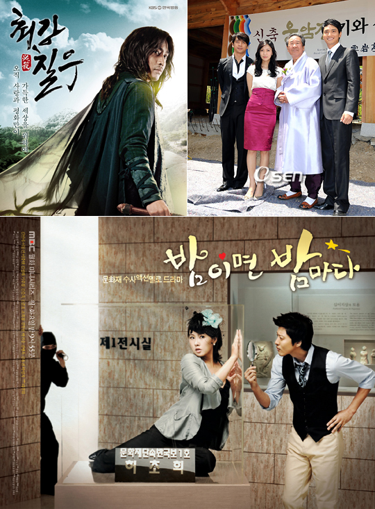 그야말로 팽팽한 기 싸움이다. MBC ‘이산’이 떠난 자리에 소리 없는 월화 드라마 전쟁이 시작됐다. 16일 MBC 인기 사극 ‘이산’의 최종회 방영 이후, 방송 3사에서는 새로운 월화드라마를 선보이며 시청률 경쟁에 돌입한다. KBS 2TV ‘최강칠우’와 SBS ‘식객’은 이례적으로 17일 1, 2회를 연속 편성했다. ‘이산’이 16일 최종회를, 17일 ‘이산’ 스페셜을 편성한 것에 대한 대응책이다. 이에 반해 MBC ‘밤이면 밤마다’는 23일 첫 방송이어서 초반 관심을 얻는 데는 불리할 수 있다. 하지만 3사 드라마 모두가 독특한 소재와 톱스타들의 출연이라는 점을 감안할 때 드라마의 우열은 가늠하기 어려워 보인다. 시청자의 리모컨이 어디로 향할지는 드라마가 시작되는 17일 판가름 난다. MBC ‘밤이면 밤마다’- 김선아 복귀작, 문화재 소재 '밤이면 밤마다'(김은희 극본, 손형석 연출)는 ‘김선아의 복귀작’이라는 것뿐만 아니라 지금껏 드라마에서는 다루지 않았던 ‘문화재’라는 특이한 소재가 눈길을 사로잡는다. 최근 국보 1호인 숭례문이 불탄 상황이라 문화유산의 가치를 환기시키겠다는 드라마의 기획의도가 시의성도 있다. 드라마는 김선아와 이동건의 호흡 이외에도 문화재 감정사와 복원사 등 쉽게 접하지 못했던 직업과 새로운 세계를 보여줌으로써 다양한 볼거리를 제공할 예정이다. 하지만 17일 1, 2회를 연속방영하는 KBS와 SBS와는 달리 다음 주인 23일 첫 방송되는 ‘밤이면 밤마다’는 초반의 관심을 모으는 데 어려움이 있을 수 있다. ‘이산’의 후광 또한 장담할 수는 없다. KBS ‘최강칠우’ - 에릭의 사극, 박진감 있는 극 전개 ‘최강칠우’(백운철 극본, 박만영 연출)는 신화의 멤버 에릭이 주인공을 맡은 작품이다. 현대극에 잘 어울리는 외모를 가진 그가 사극을 선택한 것은 다소 의외라는 게 주변의 평. 하지만 오히려 이 점이 기대감을 낳게 하기도 한다. 에릭의 상대역으로는 SBS ‘왕과 나’에서 폐비 윤 씨로 출연했던 구혜선이 호흡을 맞춘다. ‘최강칠우’는 퓨전사극이라는 차별성이 있다. 매회 다른 에피소드로 박진감 있고 빠른 전개를 보일 것으로 보인다. 하지만 이미 SBS ‘일지매’에서 비슷한 소재를 다루고 있어 소재면에서는 새롭지 못하다는 느낌을 줄 수 있다. SBS ‘식객’ - 허영만 화백의 원작, 화려한 볼거리와 영상 ‘식객’(최완규 극본, 최종수 연출)은 허영만 화백의 원작 만화를 바탕으로 한다. 드라마의 최대 강점이지만 경우에 따라서는 단점이 될 수도 있다. 영화로도 제작돼 이미 성공을 거둔 ‘식객’이 드라마에서도 성공을 거둘 수 있을 지 관심이 높다. 최불암 강남길 김원종 등의 중견배우들과 김래원 남상미 권오중 등 연기력과 흥행력을 갖춘 배우의 캐스팅이 일단 탄탄하다. 최근 최대 논란거리인 ‘먹거리’를 다룸으로써 드라마에서 벗어나 사회적인 이슈가 되는 통로가 될 수도 있다. 우리나라 4계절을 바탕으로 음식을 소개할 ‘식객’은 3사 드라마 중에서 가장 화려하고 색감있는 영상을 자랑할 것으로 보인다. 하지만 자칫 내용이 아닌 영상이 주가 될 가능성도 염두에 두어야만 한다. 검증받은 원작이 있다는 것은 반대로‘식객’이 넘어야할 산이다. 이미 만화와 영화를 통해서 다양한 모습을 보여왔기 때문에 다른 장르와는 차별화 된 모습을 보여야 된다는 것이 '식객'에 가장 큰 과제로 떨어졌다. yu@osen.co.kr . . . . .