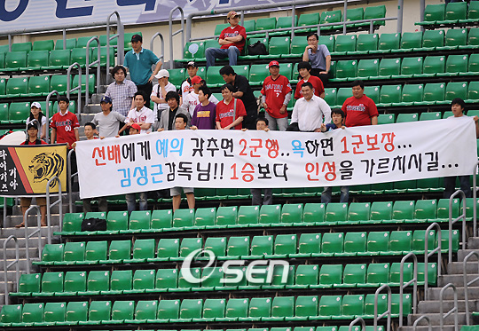 KIA 타이거즈 팬들이 단단히 화가 났다. 17일 잠실 두산 베어스-SK 와이번스전 우익수 쪽 외야석에는 KIA팬들의 플래카드가 붙어있었다. 이는 지난 15일 문학 SK-KIA전서 일어난 SK 우완 윤길현과 KIA 외야수 최경환의 빈볼시비서 윤길현의 사과를 촉구하는 KIA팬들의 무언의 항의였다. 경기가 끝난 후 SK 선수들은 숙소로 이동조차 못한 채 덕아웃 뒤서 대기하고 있었다. 이는 KIA팬들이 잠실구장 중앙 출입구를 봉쇄해버렸기 때문. KIA팬들은 동시에 선수단 버스를 가지 못하게 현수막으로 둘러쌌다. KIA 팬들은 김성근 감독과 윤길현 등의 사과를 원하며 극렬하게 항의했다. 크게 화가 난 KIA팬들의 움직임에 김성근 감독을 비롯한 SK 선수단은 결국 외야 쪽으로 이동해 숙소서 제공한 버스를 이용해 우여곡절 끝에 10시 경 숙소로 이동했다. SK의 한 구단 관계자는 "우익수 쪽 외야에 플래카드를 걸어놓고 대기 중이던 관중들이 7회가 되자 조금씩 사라졌다. 혹시나 해서 가봤더니 계란을 나눠주고 있었다. 선수에 위해를 가할 수 있는 계란까지 들었다는 것은 단순한 시위 수준이 아니다"라고 이야기했다. 뒤이어 관계자는 "선수단은 이미 숙소로 돌아온 상태다. 일부 KIA팬들은 이를 듣고 숙소로 몰려가고 있다고 들었다"라며 우려를 나타냈다. 그러나 KIA 팬들은 "계란은 준비하지 않았다. 그저 SK 선수단의 공개 사과를 원했을 뿐 물리적인 압력을 원하지 않았다"라며 SK 관계자의 이야기를 부정했다. chul@osen.co.kr . . . . . 17일 잠실 두산-SK전서 KIA 팬들이 최근 SK 윤길현 투수의 빈볼 시비및 언행에 관해 현수막을 들고 잠실 우측 외야석 에서 시위를 하고 있다./잠실=김영민 기자ajyoung@osen.co.kr