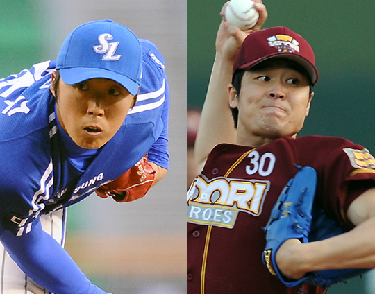 19일 목동구장에서 열리는 삼성 라이온즈와 우리 히어로즈의 대결. 삼성은 배영수(27), 히어로즈는 김수경(29)을 선발 예고했다. 소속 구단의 에이스라는 중책을 맡은 이들은 올 시즌 나란히 주춤한 모습. 지난해 팔꿈치 인대 접합 수술을 받은 뒤 1년간 재활에 전념했던 배영수는 3승 4패(방어율 4.02)를 거뒀다. 배영수는 올 시즌 히어로즈전에 두 차례 등판해 10이닝 11피안타 1볼넷 5탈삼진 2실점으로 방어율 1.80으로 짠물 피칭을 선보였으나 승리로 연결시키지 못했다. 잘 던지고도 승리와 인연을 못했던 아쉬움을 반드시 풀어낼 각오. 전날 선발 등판 예정이었으나 우천 취소로 하루 휴식을 취한 것이 약이 될지 독이 될지 지켜봐야 할 듯. '닥터 K' 김수경도 다를 바 없다. 9경기에 등판, 2승 3패(방어율 4.69)에 그쳤다. 9차례 등판 가운데 퀄리티 스타트는 2번에 불과하다. 지난달 27일 삼성전에서 1이닝 5피안타 2볼넷 5실점으로 패한 뒤 승리를 따내지 못한 만큼 이날 승리를 향한 투지가 남다르다. 13일 사직 롯데전에서 6⅓이닝 5피안타 4볼넷 3탈삼진 1실점으로 좋은 모습을 보였던 만큼 기대해볼 만하다. 특히 아직까지 홈경기에서 단 한 번도 승리(2패)를 거두지 못해 히어로즈 팬들을 위한 첫 승 신고도 절실하다. 에이스의 자존심을 건 한판 승부, 배영수와 김수경 가운데 누가 웃게 될까. what@osen.co.kr 배영수-김수경.