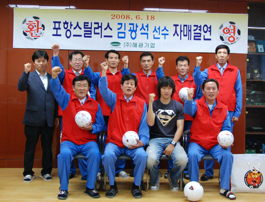 포항 스틸러스의 프랜차이즈 스타 김광석(26)이 해광기업과 특별한 인연을 맺었다. 포항 구단은 18일 포항의 주축 수비수 김광석이 윤광수 해광기업 대표이사의 초청을 받아 자매결연식과 명예사원 임명식을 가졌다고 밝혔다. 평소 포항의 열혈 팬으로 잘 알려진 윤광수 대표이사는 축구에 대한 애정도 남달라 포항시 축구협회 부회장으로 폭넓은 활동을 벌이고 있는 인사. 그는 김광석이 지난 2003년 포항에서 입단해 61경기 출장 2득점 2도움을 기록하는 등 꾸준한 활약을 펼친 것을 높게 평가했다. 윤광수 대표이사는 "김광석 선수가 더욱 성장할 수 있도록 회사 직원들과 함께 적극 응원할 것"이라 약속했고, 김광석은 "앞으로 해광기업이 주관하는 각종 행사에 참여하며 직원들과 좋은 유대관계를 맺겠다"고 화답했다. stylelomo@osen.co.kr 포항 스틸러스 제공.