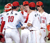 KIA가 사사구 남발로 자멸한 LG를 꺾고 연승을 올렸다. KIA는 19일 광주구장에서 열린 LG 트윈스와의 홈경기에서 투수들의 깔끔한 계투와 사사구 14개와 7안타를 적절히 묶어 8-6으로 승리를 거두고 시즌 31승36패를 기록했다. LG는 4연패(원정 7연패)에 빠지며 24승44패를 기록, 승패 적자폭이 -20개에 이르렀다. 1회말 1사만루찬스를 날린 KIA는 2회말 공격에서 김선빈의 번트안타와 김종국의 몸에 맞는 볼로 만든 2사1,3루에서 LG 선발투수 옥스프링의 폭투에 힘입어 선제점을 얻었다. 지루한 영의 행진이 벌어지는 가운데 LG가 중반전에 힘을 냈다. 5회초 이종열의 좌전안타와 희생번트로 2사2루에서 김상현의 중전안타를 날려 동점을 만들고 6회초 무사만루에서 최동수의 병살타로 쑥쓰러운 역전 점수를 냈다. 그러나 LG 투수들이 사사구로 자멸하는 통에 승기는 손쉽게 KIA로 넘어왔다. KIA는 차일목의 사구를 시작으로 1사후 이용규 이종범 김원섭이 볼넷을 얻어 가볍게 동점을 만들었다. 이어 장성호의 우익수 희생플라이로 간단히 역전에 성공했고 다시 볼넷 2개와 김선빈의 1루수 옆을 빠지는 2타점 적시타로 6-2로 달아났다. KIA는 6회에서 1안타에 불과했지만 6개의 사사구를 얻어 승기를 틀어쥐었다. KIA는 7회말 2사 1,3루에서 김원섭의 도루 때 상대실책으로 3루주자가 홈을 밟아 쐐기점을 얻었다. 장성호는 우전안타로 뒤를 받쳐 김원섭까지 홈에 불러들였다. 이날 첫 선발출전한 KIA 새로운 외국인 투수 펠릭스 디아즈는 3이닝 1안타 무실점으로 무난한 피칭을 했다. 목표 투구수 65개(실제 투구수 62개)에 이르자 4회부터 마운드에 오르지 않았다. 디아즈에 이어 언더핸드 손영민이 마운드에 올라 2이닝 2안타 1실점했고 진민호는 볼넷 3개를 내주며 위기를 초래하기도 했다. 그러나 유동훈이 6회 무사 만루에서 진민호를 구원해 LG의 추격을 한 점으로 막았고 승리투수가 됐다. LG는 8회초 3안타로 두 점을 뽑고 9회초 2사 1,2루에서 한기주를 상대로 안치용과 대타 손인호의 적시타로 다시 두 점을 추격 6-8까지 따라붙었다. 그러나 뒤집기에는 역부족이었다. 한기주는 2안타를 맞고 쑥쓰러운 15세이브를 올렸다. LG 투수들은 지난 5월29일 잠실 두산전에서 사사구 15개를 기록하고 이날도 14개를 남발하는 극심한 제구력 부진에 시달렸다. 선발 옥스프링은 5이닝 3피안타 7사사구 1실점을 기록했다. 6회부터 등판한 이재영이 3사사구 3실점으로 패전투수가 됐다. sunny@osen.co.kr