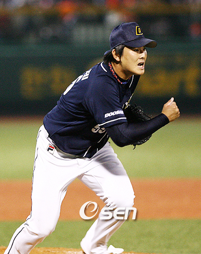 올시즌 두산 베어스의 '에이스 등번호'인 27번을 달고 놀라운 성장세를 보이고 있는 4년차 우완 김명제가 1008일만에 KIA 타이거즈를 상대로 승리를 거두며 팀의 KIA전 3연패 사슬을 끊었다. 두산이 20일 광주구장서 열린 2008 삼성 PAVV 프로야구 KIA전서 선발 김명제의 5⅓이닝 무실점 호투와 장단 13안타로 10득점한 타선의 파괴력을 앞세워 10-1 대승을 거뒀다. 두산은 이날 승리로 KIA전 3연패서 벗어나는 동시에 2위(36승 27패, 20일 현재)자리를 굳건히 지키며 2연승에 성공했다. 반면 KIA는 후반 대량 실점하며 두산전 3연승 및 홈 3연승 행진을 마감했다. 두산은 일찌감치 선제점을 올리며 분위기를 가져오는 데 성공했다. 1회초 고영민의 볼넷과 김현수의 우전안타로 맞이한 1사 1,3루 찬스서 김동주의 우익수 희생플라이로 한 점을 먼저 올린 두산은 3회서도 선두타자 고영민이 볼넷으로 출루한 뒤 도루 시도 때 투수 호세 리마의 악송구로 3루까지 진루하며 찬스를 잡았다. 주자를 득점권에 둔 김동주는 또다시 좌익수 희생플라이로 고영민을 홈으로 인도하며 2-0을 만들어냈다. 그사이 선발 김명제는 150km에 가까운 묵직한 직구를 앞세워 5회까지 사사구 없이 적극적인 피칭을 보여주며 단 1안타만을 허용하는 무실점 쾌투를 펼쳤다. 두산은 6회서도 2사 2루서 터진 채상병의 우중간 적시타로 추가점을 올렸다. 5회까지 1안타로 묶여있던 KIA는 6회말 선두타자 이용규가 좌익선상 2루타를 치고 나가며 분위기를 가져온 뒤 김원섭과 이재주의 몸에 맞는 볼로 2사 만루 찬스를 맞았다. 적시타가 절실히 필요했던 상황이다. 그러나 후속타자 최경환이 평범한 1루 땅볼로 물러나며 KIA는 만회점을 올리는 데도 실패하고 말았다. 만루 찬스를 살리지 못한 KIA의 허탈함을 뒤로 한 채 두산은 바뀐 투수 양현종을 상대로 7회 무사 1,2루를 만든 뒤 김현수의 중전 적시타로 한 점을 더하며 대량 득점의 신호탄을 쏘아 올렸다. 김동주의 몸에 맞는 볼로 무사 만루 찬스를 이어간 두산은 오재원의 우중간 주자일소 2루타로 단숨에 7-0을 만들며 확실하게 쐐기를 박은 뒤 정원석의 1타점 중전 안타와 이대수의 1타점 3루 땅볼, 이종욱의 1타점 우전 안타로 7회서만 타자일순 하며 7득점, 승기를 확실하게 잡았다. KIA는 8회 2사 1,3루서 이재주의 중견수 희생플라이로 1점을 만회하며 영패를 모면했다는 데에 만족해야 했다. 두산 선발 김명제는 5⅓이닝 동안 사사구 없이 2피안타(탈삼진 4개) 무실점 호투로 시즌 6승(2패)째를 따내는 동시에 지난 2006년 5월 3일부터 이어져 온 KIA전 5연패 사슬을 끊었다. 김명제는 지난 2005년 9월 17일 광주 경기서 5이닝 2피안타 1실점으로 선발승을 거둔 이후 1008일 만에 KIA전 승리를 거뒀다. 반면 KIA 선발 리마는 6이닝 6피안타 3실점(2자책)으로 퀄리티 스타트를 기록했지만 팀 타선의 침묵으로 시즌 6패(3승)째를 기록했다. 최근 24경기 연속 출루 및 5경기 연속 안타를 기록 중이던 '스나이퍼' 장성호는 4타수 2안타 1득점으로 제 몫을 충실히 하는 동시에 기록을 이어갔으나 팀의 패배로 빛을 잃었다. chul@osen.co.kr 김명제, "27번이 잘 맞나봐요" · 다카쓰, 24일 두산전 엔트리 등록 예정