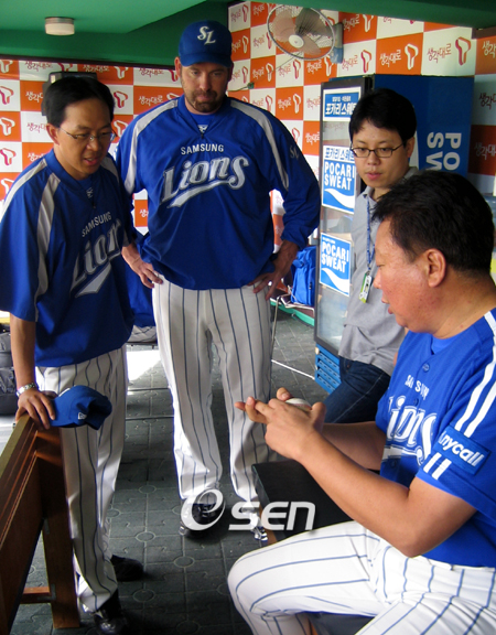 "나만의 슬라이더는 알려줘도 쓸 수 없어". 22일 삼성-SK전이 열리기 전 문학구장 3루 덕아웃. 삼성 외국인 투수 톰 션(31)이 선동렬 삼성 감독에게 다가와 슬라이더 그립을 쥐며 가르쳐 달라는 제스처를 취했다. 외국인 선수 통역 담당 엄홍 과장을 통해 선 감독의 화려한 경력에 대한 이야기를 들었던 션은 전날 TV 방송을 통해 선 감독의 다이나믹한 투구를 본 뒤 놀라움을 감추지 못했다는 후문. 현역 시절 150km를 웃도는 직구와 140km 안팎의 슬라이더로 야구계를 평정했던 선 감독은 난감한 표정을 지었다. 자신만의 슬라이더를 남에게 전수해도 쉽게 받아들일 수 없다는 것. "내가 슬라이더 던지는 방법을 알려줘도 원리만 전해줄 뿐이다". 프로야구 최초 노히트노런을 달성한 방수원(전 해태 투수)으로부터 슬라이더를 전수 받은 선 감독은 다른 투수들에 비해 손가락이 짧아 그립을 쥐고 공을 던지는 방법이 남다르다. 손가락이 짧다는 단점을 보완하기 위해 실밥에 오른손 중지를 걸칠 때 손가락 바닥면을 모두 공에 붙이고 검지는 공 표면에 살짝 대는 정도로 슬라이더 그립을 잡는다. 그야말로 자신만의 슬라이더인 셈. 선 감독은 엄 과장을 불러 션에게 자신만의 슬라이더 그립에 대해 설명했다. "직구와 똑같은 폼으로 위에서 내리 찍는다는 기분으로 던진다. 그러면 옆으로 휘는 것이 아니라 위에서 아래로 떨어진다". '슬라이더의 달인' 선 감독의 설명을 들은 션은 고개를 끄덕이며 라커룸으로 발걸음을 옮겼다. what@osen.co.kr . . . . .