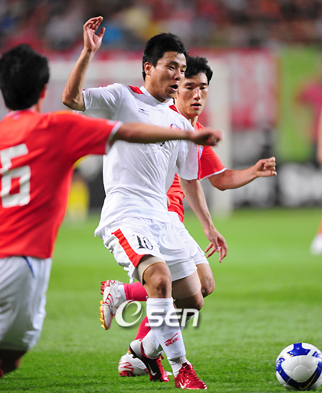 "월드컵 진출이 목표". 22일 서울 월드컵경기장에서 열린 2010 남아공월드컵 아시아지역 3차예선 3조 6차전 한국과 북한은 득점없이 비겼다. 이날 북한 대표팀의 공격을 이끈 홍영조(26, 베자니아 베오그라드)는 팀 관계자에게 이끌려 경기장을 재빨리 빠져 나갔다. 그 와중에 한국 기자들의 질문을 받은 홍영조는 "열심히 노력해야 한다"면서 "최종예선에 진출했기 때문에 만족한다. 최종예선에서 좋은 경기를 통해 월드컵에 나가는 것이 목표"라고 짧게 대답했다. 이날 선발 출장한 홍영조는 후반 41분 최금철과 교체되며 그라운드를 떠날 때까지 북한이 수비적인 경기를 펼치는 가운데도 빠른 스피드를 내세워 한국 수비진을 괴롭혔다. 홍영조는 이날 무승부로 3승 3무 승점 12점을 기록했지만 득실차서 한국에 밀려 조 2위로 최종예선에 진출한 북한이 3차예선서 기록한 4골 중 3골을 넣었다. 10bird@osen.co.kr