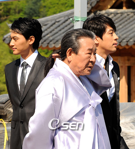 환갑도 훨씬 지난 노배우가 머리카락에 가발을 붙이고 ‘말총머리’를 했다. 목소리는 예전 정치드라마에 나왔던 것처럼 간드러졌고 도포자락을 휘날리고 다닌다. SBS TV 월화드라마 ‘식객’에 나오는 대령숙수 최불암(68)의 모습이다. ‘식객’은 변칙 편성이라는 비난 속에서도 가장 먼저 작품성으로 눈길을 끈 지상파 방송 3사의 새 월화드라마다. 그 중심에 최불암이 우뚝 서 있다. 최불암이 연기하는 대령숙수는 영화 ‘식객’에서 김진태가 만들었던 캐릭터와는 딴판이다. 김진태의 캐릭터가 위엄을 먼저 떠올리게 했다면 최불암의 캐릭터는 친근감이 더 앞선다. 물론 한 평생 한 우물을 판 장인의 풍채는 두 캐릭터에서 공통적으로 묻어나고 있다. 그렇다면 최불암은 어떤 고민으로 이 같은 캐릭터를 창조했을까. OSEN과의 전화통화에서 최불암은 “한 평생을 주방에서 산 인물이고 또 손님들을 맞이해 대접했을 시간들을 유추해 볼 때 먼저 여성성이라는 단어가 떠올랐다”고 밝혔다. 하이톤의 간드러진 목소리를 그런 이유에서 만들어졌다. 운암정을 찾은 손님들에게 양 손을 비비며 최고의 예를 갖추는 것도 평생을 간직해 온 서비스 정신에서 나온 모습니다. 최불암이 창조한 여성성은 운암정의 세 후계자 후보, 즉 성찬(김래원 분)과 봉주(권오중 분), 민우(원기준 분)의 ‘겨루기’에서 최고조에 달했다. 세 일급 요리사들이 만들어낸 음식을 하나하나 맛보면서 최불암이 쏟아냈던 표현들은 ‘여성화 된’ 대령숙수가 아니었으면 어울리지 않을 뻔했다. 예술가의 경지에 달한 대령숙수의 절대미각은 나비가 꽃밭을 날고 물고기가 바닷속을 헤엄치는 그래픽으로 형상화 돼 말로 형언할 수 없는 오묘한 맛을 시청자들에게 전했다. 말총머리는 ‘위생성’이라고 했다. 최불암은 “주방의 첫째 원칙은 위생이다. 아무리 맛있는 음식이라도 위생이 전제되지 않으면 그 가치는 반감된다. 머리를 뒤로 깔끔하게 묶은 것은 그런 이미지를 주고자 했다. 나이에 어울리지 않는다는 나쁜 평이 나올까 염려스러웠는데 다행히 잘 어울린다고들 해 안심이 됐다”고 밝혔다. 위생을 강조하는 최불암의 ‘작은 액션’은 또 있다. 양 손의 위치다. 드라마를 보고 있노라면 양 손의 높이가 허리 위쪽에 가 있는 경우를 자주 발견할 수 있다. 최불암은 “요리사에게 손은 생명이라고 생각했다. 다른 사람의 입으로 들어가는 음식이 내 손에서 만들어진다고 생각하면 절대 손을 함부로 할 수 없다”고 이유를 설명했다. 한복을 입고 나오는 것도 이유가 있었다. 전통성이었다. “전통을 계승한 자로서 역사성을 표현할 필요가 있다고 생각했다. 한복을 입음으로써 그런 상징성을 더 높일 수 있을 것 같았다”고 말했다. 노배우가 분석한 캐릭터는 바로 ‘식객’의 1, 2부를 관통하는 중심이 됐다. 다소 어지러울 수 있는 도입부에 버티고 있는 최불암이라는 존재는 다양하게 전개되는 이야기를 하나로 묶어주는 벼리였다. 젊은 배우들이 제 자리를 잡기 전, 드라마 초반부에서 최불암이 해내고 있는 일은 대령숙수 그 이상이다. 100c@osen.co.kr . . . . . 말총머리 한복 차림의 최불암 뒤로 두 젊은 배우 원기준과 권오중이 서 있다.
