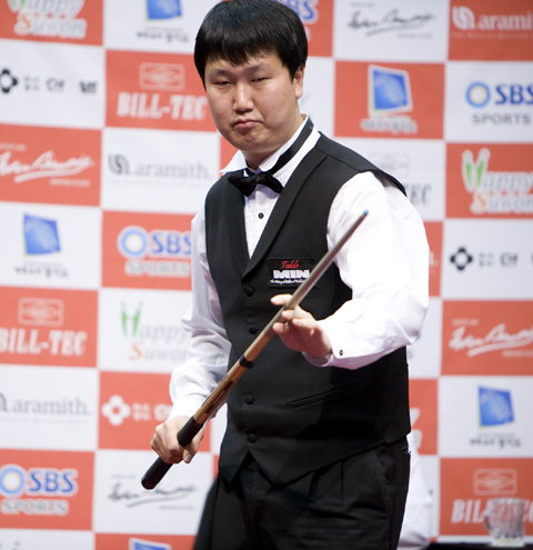 제3회 아시아 3쿠션 선수권대회가 23일 막이 올라 25일까지 서울 삼정호텔에서 열린다. 아시아 각 국가에서 치열한 예선을 통과한 최정상급 선수들이 참가한 이번 대회는 4개조 풀 리그전(예선 30점 단판)으로 예선이 진행되고 각 조 2위까지 본선 8강에 진출한다. 그리고 본선에서는 5전 3선승제(1세트 15점)의 토너먼트로 진행된다. 대회 참가 선수로는 2008 2008 세계3쿠션선수권과 2008 월드 슈퍼컵 우승자인 일본의 우메다 류지(세계 랭킹 5위)와 2007 수원 세계3쿠션 월드컵 준우승을 차지한 트란 치탄 그리고 국내 최강자인 세계랭킹 8위 김경률이 참가한다. 한국 대표로 참가하는 김경률은 "이번 대회는 일본의 우메다와 한판 승부가 될 것"이라며 "반드시 우메다를 꺾고 한국이 아시아 3쿠션의 최강자라는 것을 확인시켤 줄 것이다"라고 필승 의지를 나타냈다. 한편 이번 번대회 우승자는 세계 3쿠션 월드컵에 시드선수로 발탁된다. 10bird@osen.co.kr 김경률(대한당구연맹 제공).