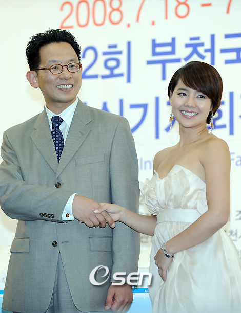 부천국제판타스틱 영화제 기자회견이 24일 오후 서울 코리아나호텔에서 한상준 집행원장,이두용 심사위원장, 홍보대사 유진, 권용민 프로그래머,박진형 프로그래머 등 관계자들이 참석한 가운데 열렸다. 이번 영화제는 '사랑,환상,모험'을 주제로 오는 7월 18~27일 열흘동안 개최된다. 홍보대사 유진과 한상준 집행원장이 악수를 하고 있다./윤민호 기자 ymh@osen.co.kr