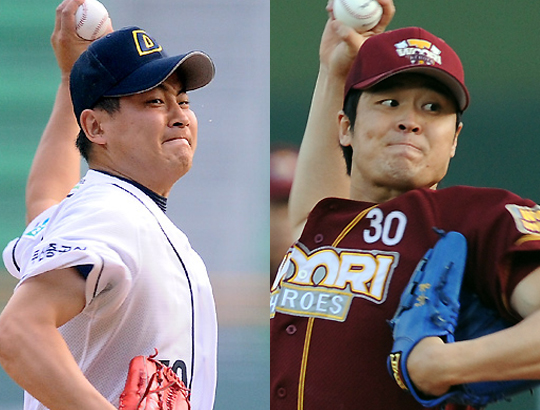 '서른 살 동갑의 선발 맞대결'. 두산 좌완 이혜천과 히어로즈 김수경이 25일 잠실구장에서 선발 맞대결을 벌인다. 전날 경기에서 4-5로 아쉽게 패한 두산은 강속구 좌완 이혜천을 내세워 설욕을 노린다. 3승 3패(방어율 5.44)를 기록 중인 이혜천은 히어로즈와의 대결에서 승패 없이 방어율 7.50을 기록했다. 지난달 6일 히어로즈전에 선발 출격한 이혜천은 6이닝 7피안타(1피홈런) 1볼넷 4탈삼진 5실점 난타 당했던 쓰라린 기억이 남아 있다. 최근 구위는 좋은 편이 아니다. 지난 5경기에서 1승 2패(방어율 5.40)로 다소 불안한 모습을 드러냈다. 그러나 안방에서 3승 1패로 강한 면모를 보여준 만큼 잠실 팬들의 뜨거운 환호 속에 시즌 4승을 노려볼 만하다. 전날 경기에서 8회와 9회 3점을 보태 추격전에 나섰으나 1점차로 고배를 마셨다. 이날 경기에서 승리를 거두기 위해 선취 득점이 중요하다. 4타수 무안타에 그친 이종욱(28)과 3타수 무안타로 침묵한 김현수(20)의 분발이 요구된다. '닥터 K'라고 불리던 김수경은 전성기의 위력적인 구위는 결코 아니다. 예전 같으면 다승, 탈삼진 등 각종 랭킹에서 상위권에 오를 선수이지만 2승 3패(방어율 5.06)에 불과하다. 히어로즈가 선전하기 위해 김수경의 부활은 필수 요건. 하지만 지난 5경기에서 승리 없이 2패(방어율 7.45)에 그쳤다. what@osen.co.kr 이혜천-김수경.